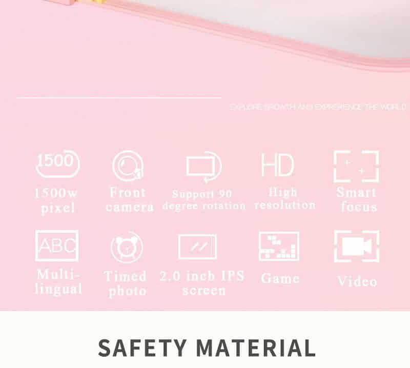 With 1.77″ HD display, high-quality CMOS sensor and built-in microphone, allows kids to take beautiful pictures and record vivid video freely.