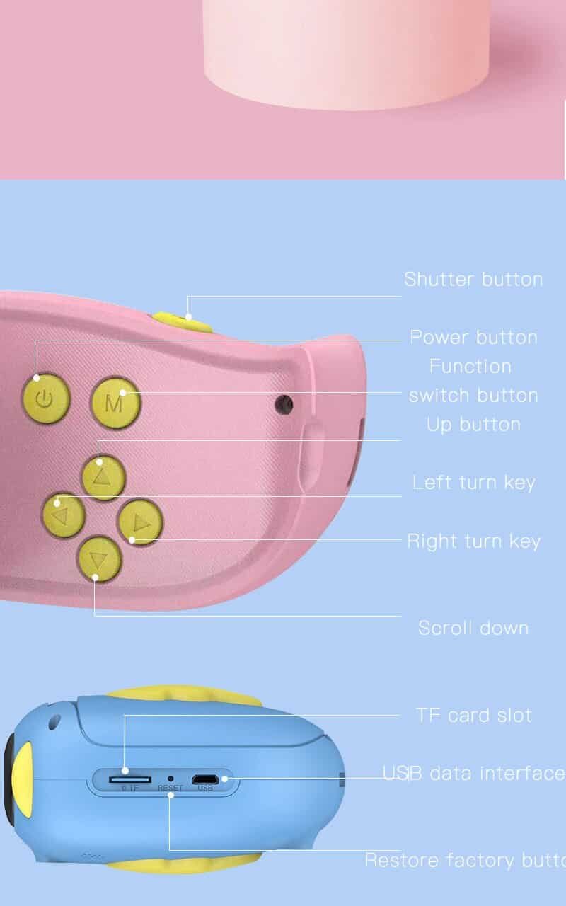 This digital video camera is specially made for kids, super mini size, suitable for kids’ little hands.