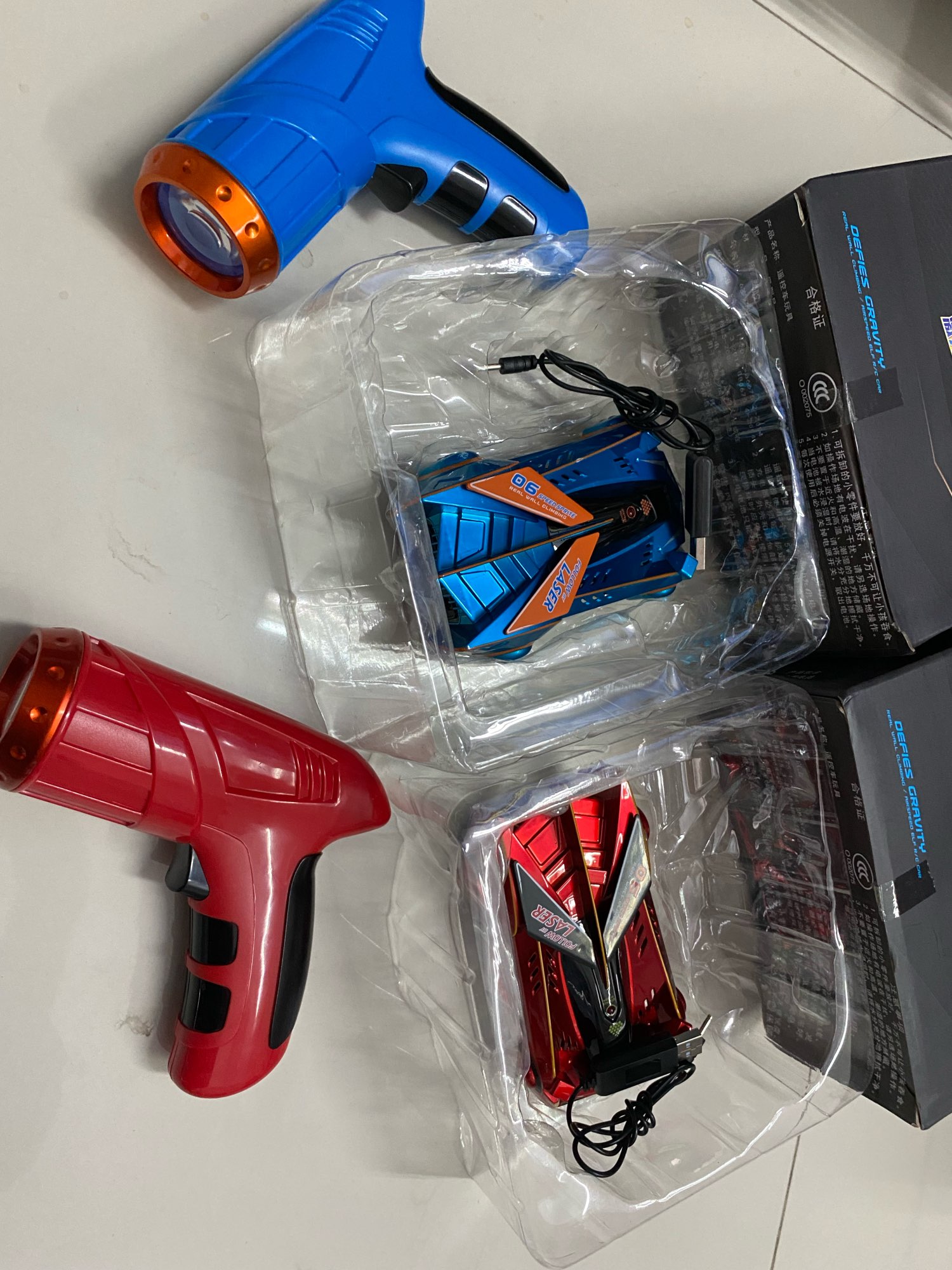 Rotate in 360 degrees when racing, forwarding, and reversing. This makes a great gift for kids 3 and up. The zero-gravity laser is USB rechargeable.