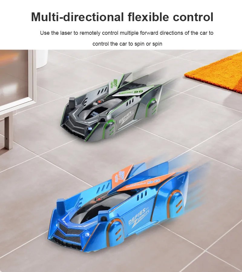 Use the laser controller to spot the laser light beam on the wall, ceiling, or floor, and the zero-gravity laser racing machine will make the light in any direction. Our laser remote control race car can be used on any smooth surface.