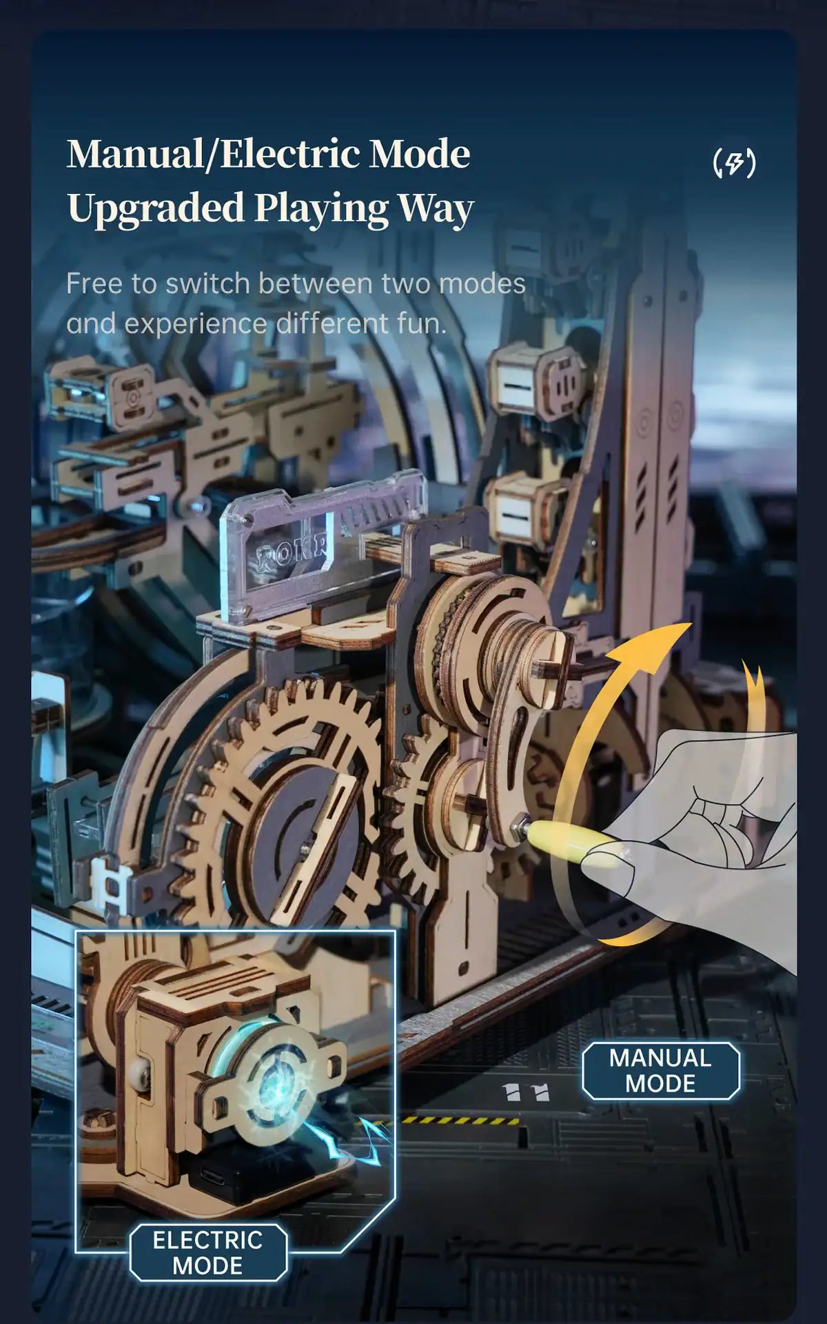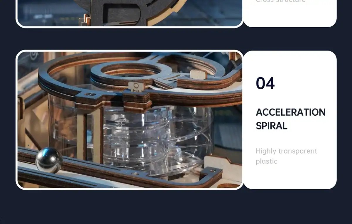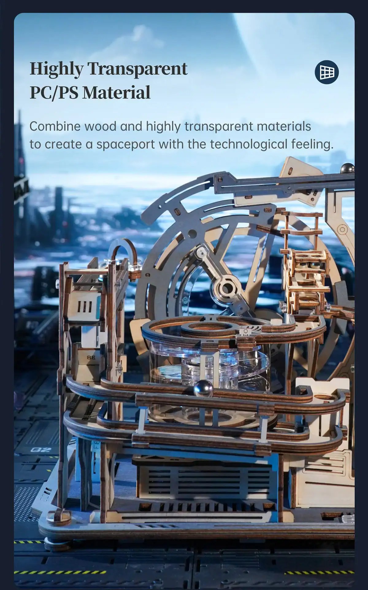 【Enthralling Fusion of Art and Engineering】Delve into the mesmerizing world of our Marble Spaceport LGC01, where the elegance of science intertwines with the precision of machinery. Experience the excitement of gravity loops, gear crosshatches, and mid-air acceleration vortices as marbles race through this intricate system, creating a spectacle that delights both the mind and the senses.