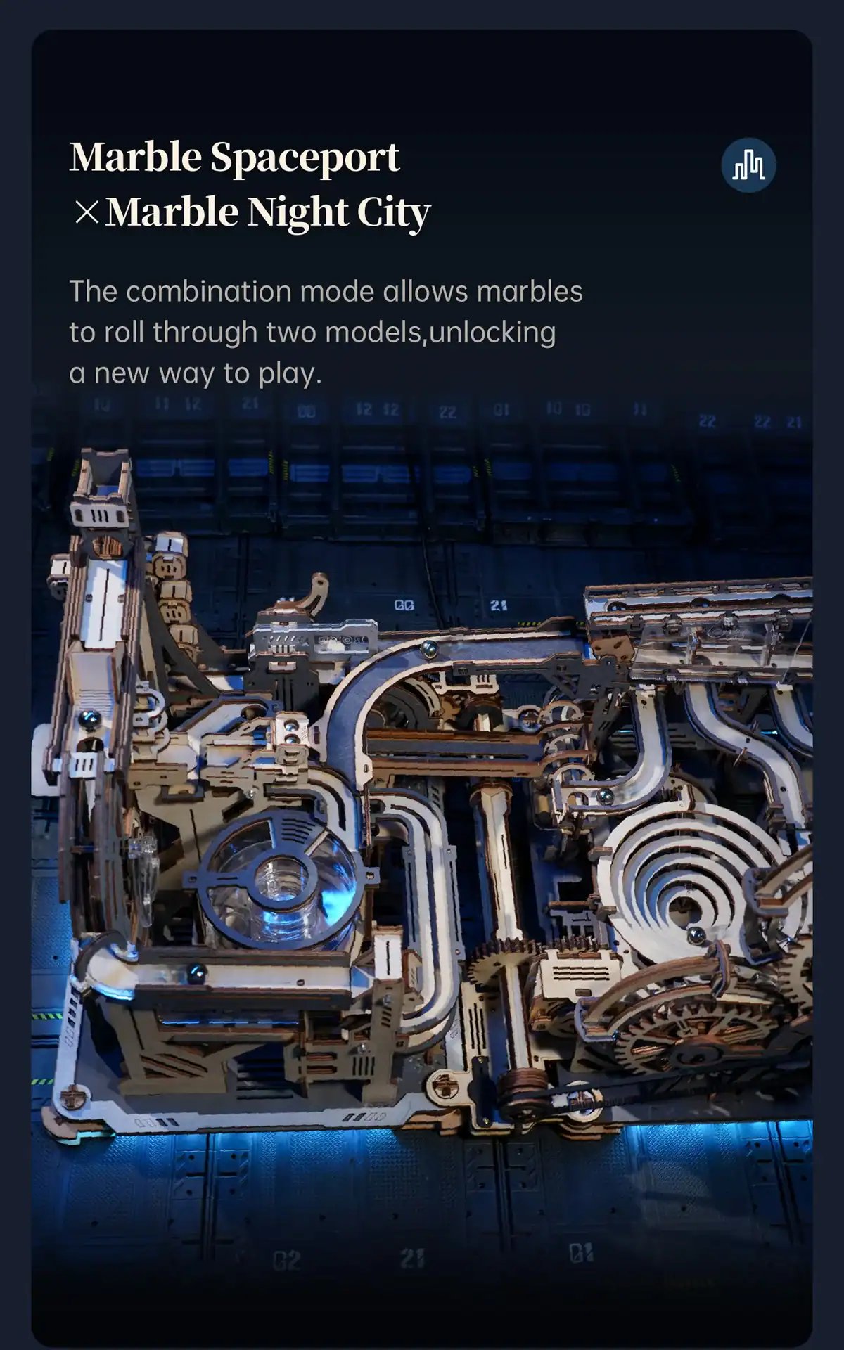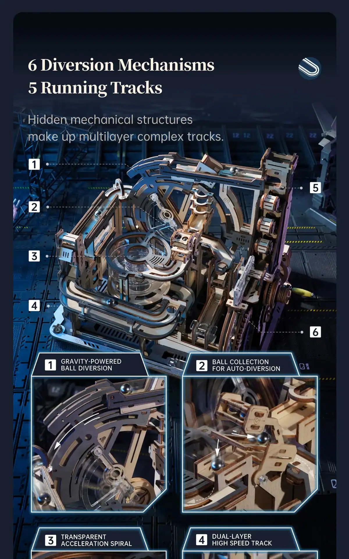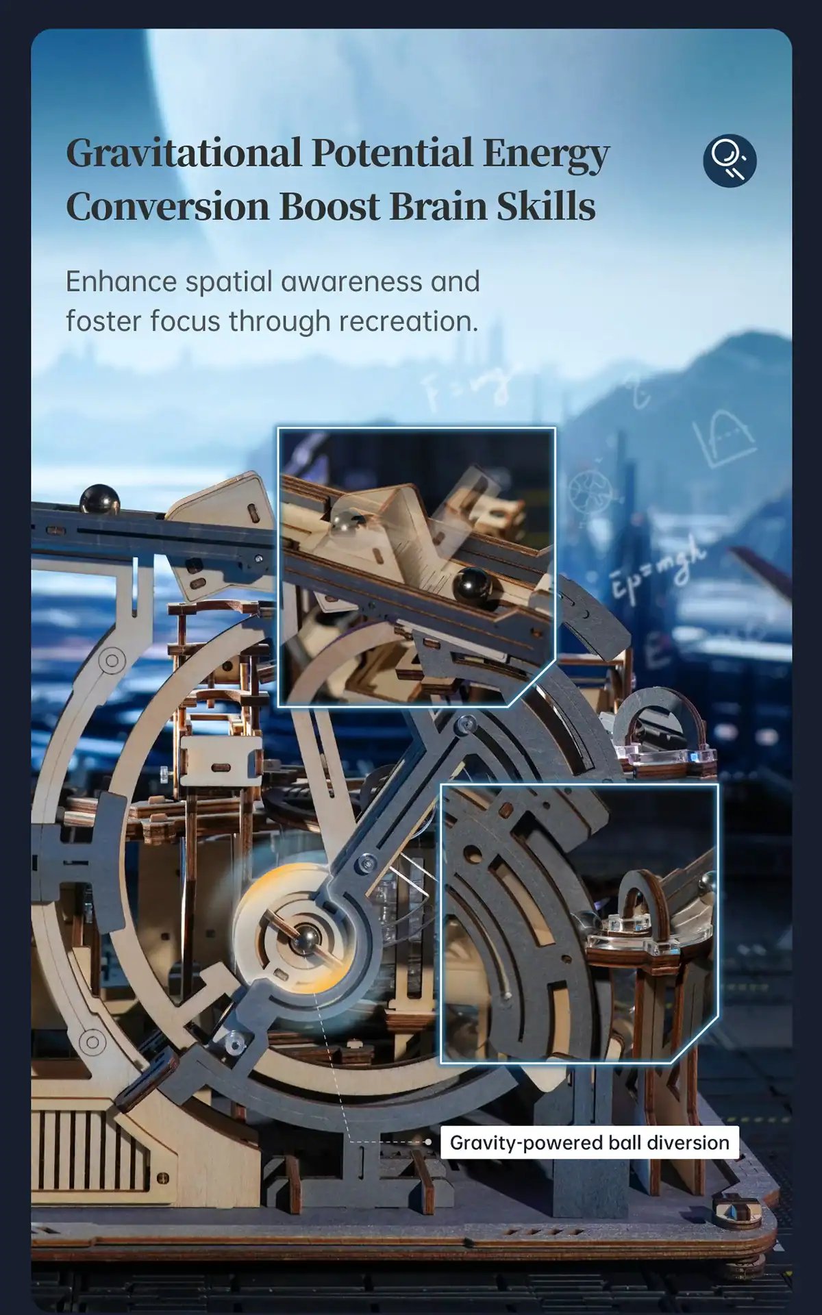 【Enthralling Fusion of Art and Engineering】Delve into the mesmerizing world of our Marble Spaceport LGC01, where the elegance of science intertwines with the precision of machinery. Experience the excitement of gravity loops, gear crosshatches, and mid-air acceleration vortices as marbles race through this intricate system, creating a spectacle that delights both the mind and the senses.
