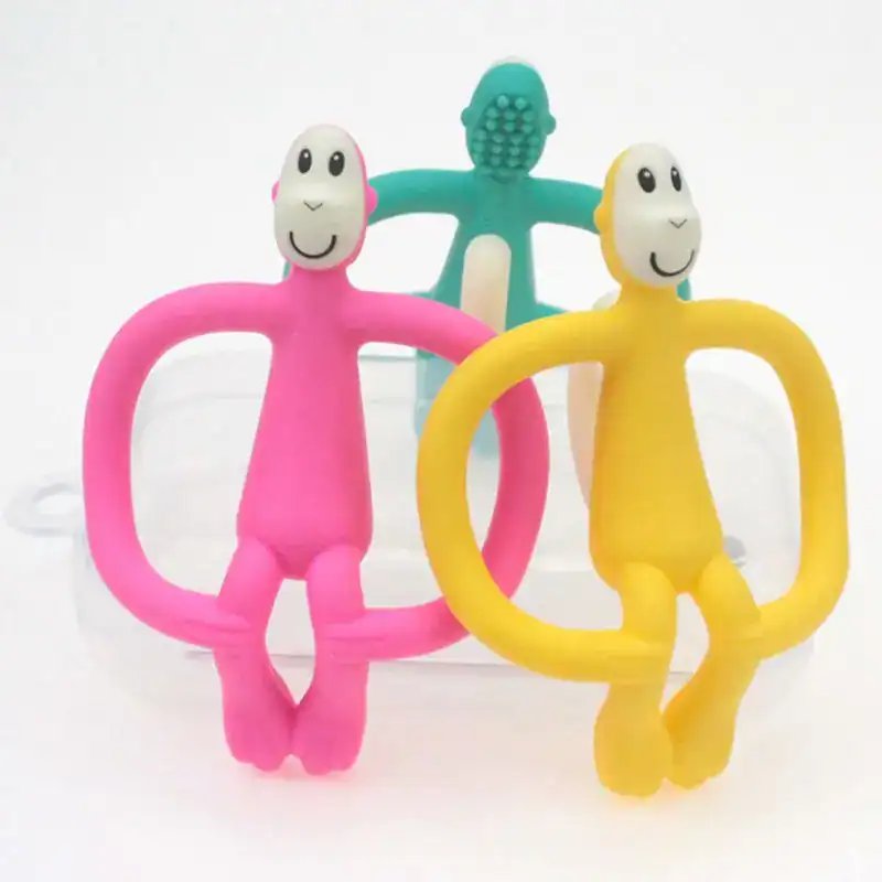 • Teething Relief: The primary function of the Monkey Teether is to provide relief from teething pain. The textured surface and soft silicone material help to soothe sore gums and reduce discomfort.
