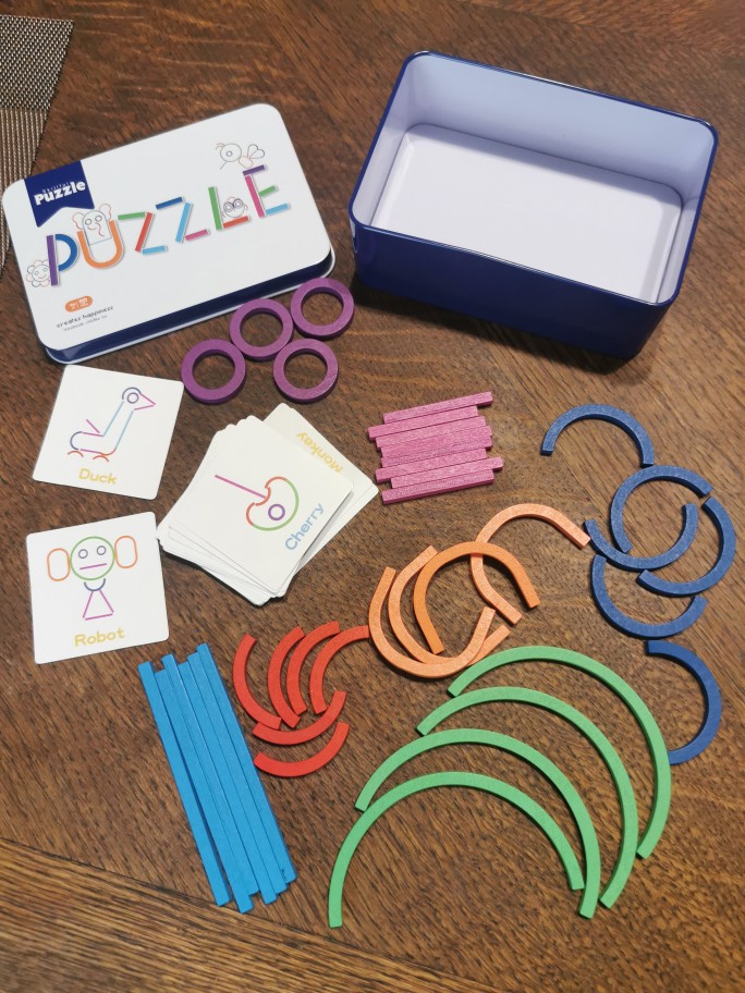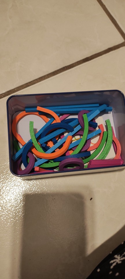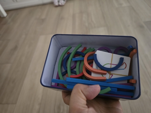 The can arrived well protected and packaged. The pieces are made of wood and match the description. It's quite entertaining. It can be taken on a hike as it takes up little space.