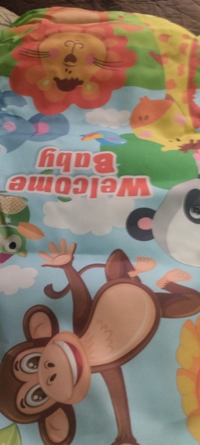 It looks very good although the fabric of the mat is a bit thin but for inside the playpen it's very good.