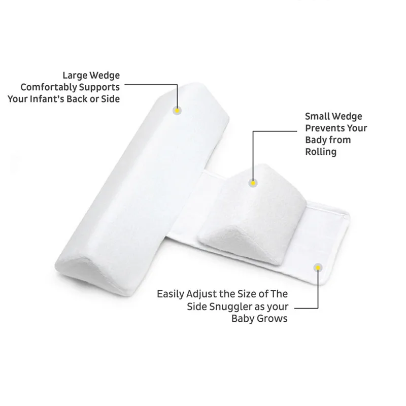 Keep the baby stable and secure on the side, without rolling over on the stomach or back with our newborn baby pillow! This pillow helps keep your toddler’s head in place while supporting the natural shape of their developing head and neck. The product is soft, skin-friendly, comfortable, and safe for your baby – all you could ask for! The pillowcase is detachable and easy to clean, and the hook and loop fastener makes the width adjustable and flexible to grow with your baby. The pillow is small and flexible and can be used anywhere on a flat surface, cradle, stroller, crib, or parent bed. It can also be used as a mattress mat. The side pillow is suitable for children between 0-6 months. Guaranteed comfortable and safe sleep for the little child! Buy now!