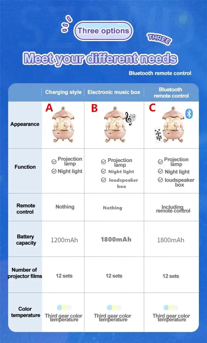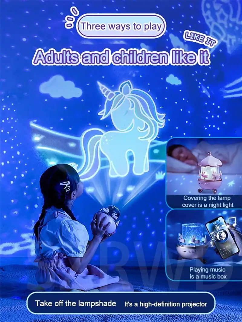 12 INTERCHANGEABLE FILMS & 3 THEMES – Choose from Bedtime Stories, Puzzle Education, or Festival Celebrations, featuring stars, moons, mermaids, birthdays, and more. Each theme brings an exciting bedtime adventure, helping your child stimulate imagination, learn, and fall asleep peacefully.