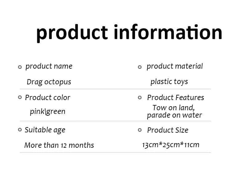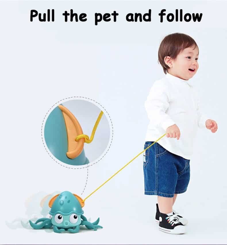 Let’s make bath time become a fun time for your child with this Octopus bath toy! This toy has bright colors and a cute appearance design, easy to draw your kid’s attention. It can crawl for a certain distance after letting go! It can not only crawl on land but also swim in the water for a while. The Octopus bath toy is made of environmentally friendly ABS. The edge of the children’s sprinkler toy is very smooth, non-toxic, odorless, safety durable, and will not fade. The toy helps to train children’s tactile cognition and hand-eye coordination during the playing process. Learning from playing, is a good choice for early educational toys. Ideal gift for your kids! Buy now!