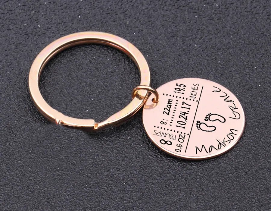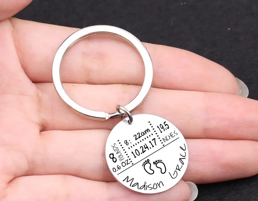 • “This keychain has been a wonderful keepsake for me. The engraving is so precise, and the keychain is easy to carry and use. It’s a beautiful reminder of my baby’s birth, and I love having it with me every day.”