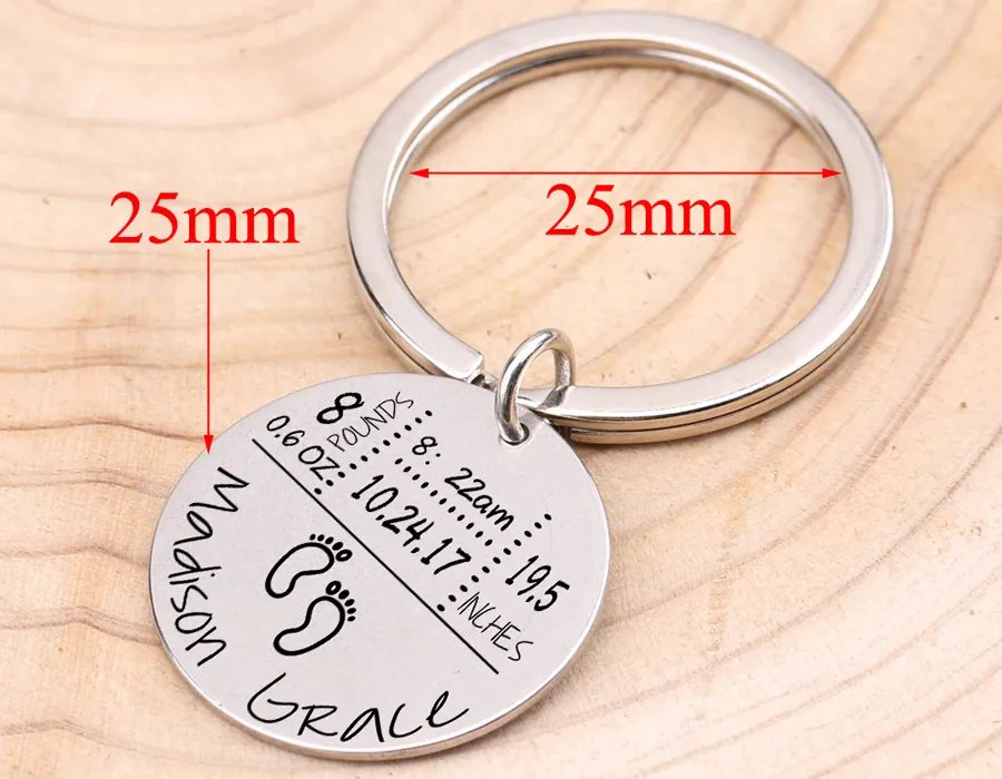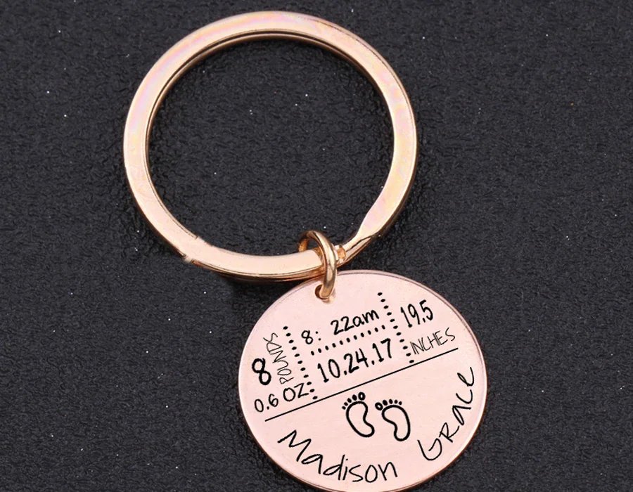 • The Personalized Baby Birth Keychain makes a thoughtful and meaningful gift for new parents, grandparents, and loved ones. It is a perfect way to celebrate the birth of a new baby and create a lasting memory that can be cherished for years.