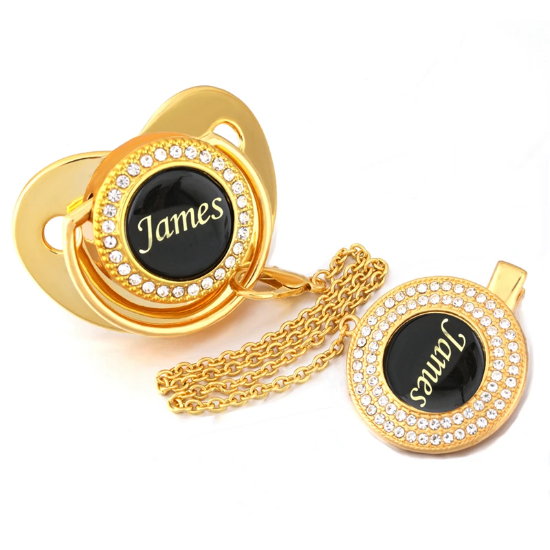 Are you looking for a unique pacifier and clip for your baby? Introduce to you our Personalized bling pacifier, it will be the perfect gift for your little one. It also prevents the dummy from being mistaken for another child’s dummy in the nursery. Thereby the risk of bacteria being transferred from one child to another is reduced significantly. It is engraved with modern UV laser technology which results in a smooth and even surface that is not worn off – therefore it is very hygienic. All dummies are 100% free from BPA, PVC, and phthalates. The clips attach easily to all clothing, blankets, strollers, or car seat straps, and stay firmly in place. It’s great for congratulations gifts, christenings, parties, and more! Buy now!