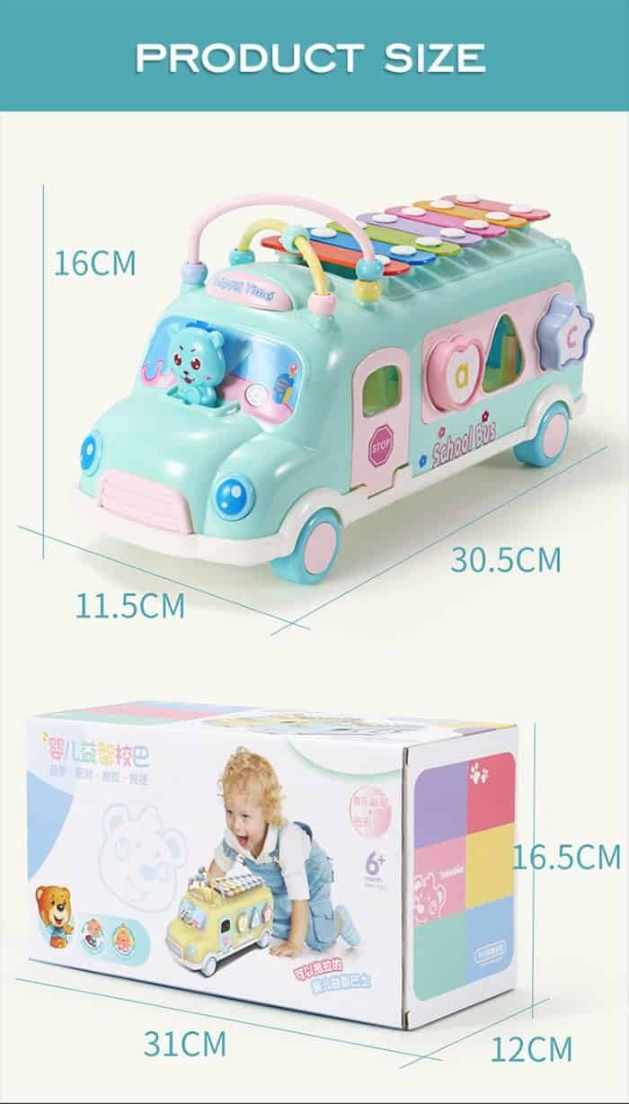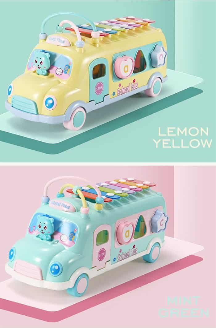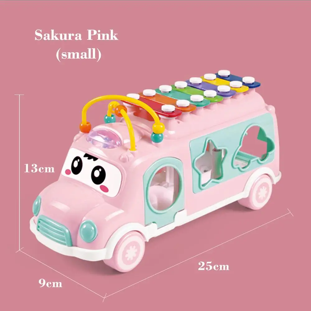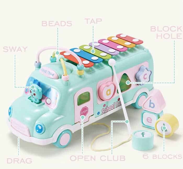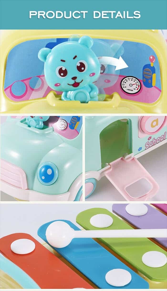 This Plastic Xylophone Bus is so fun! Multi-functional: push/pull along car, xylophone, shapes toys and more. Non-toxic and no easily deformed.