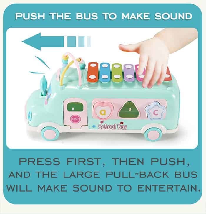 🎵 FUN & SAFE FOR TODDLERS: This toddler musical instruments baby boy girls toys 6 to 12 months bus is made of smooth non-toxic plastic with no choking hazards, so playtime stays safe.