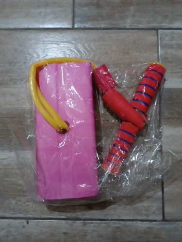 отличная скакалка. еще и пищит при прыжках. Дочка довольна