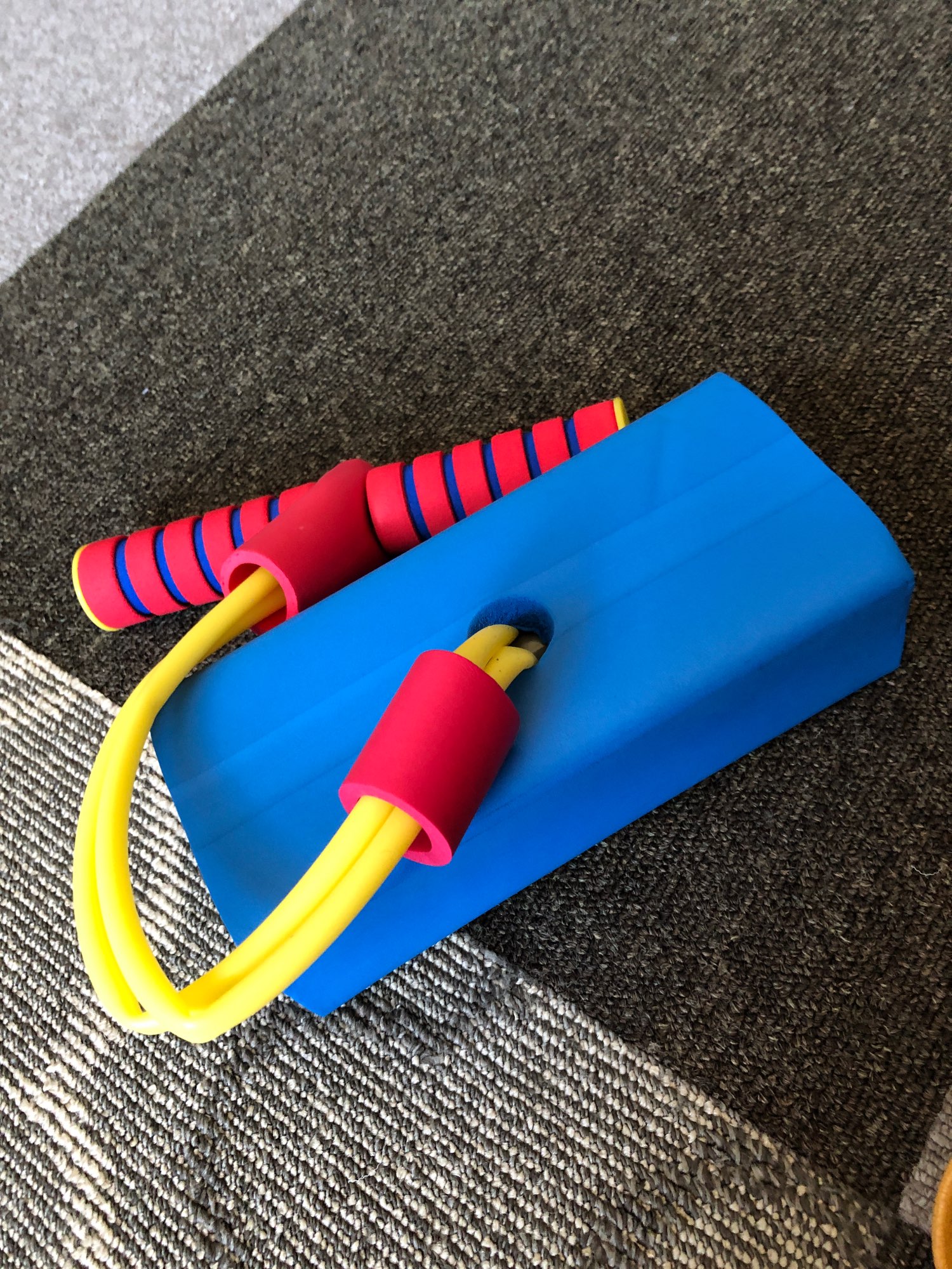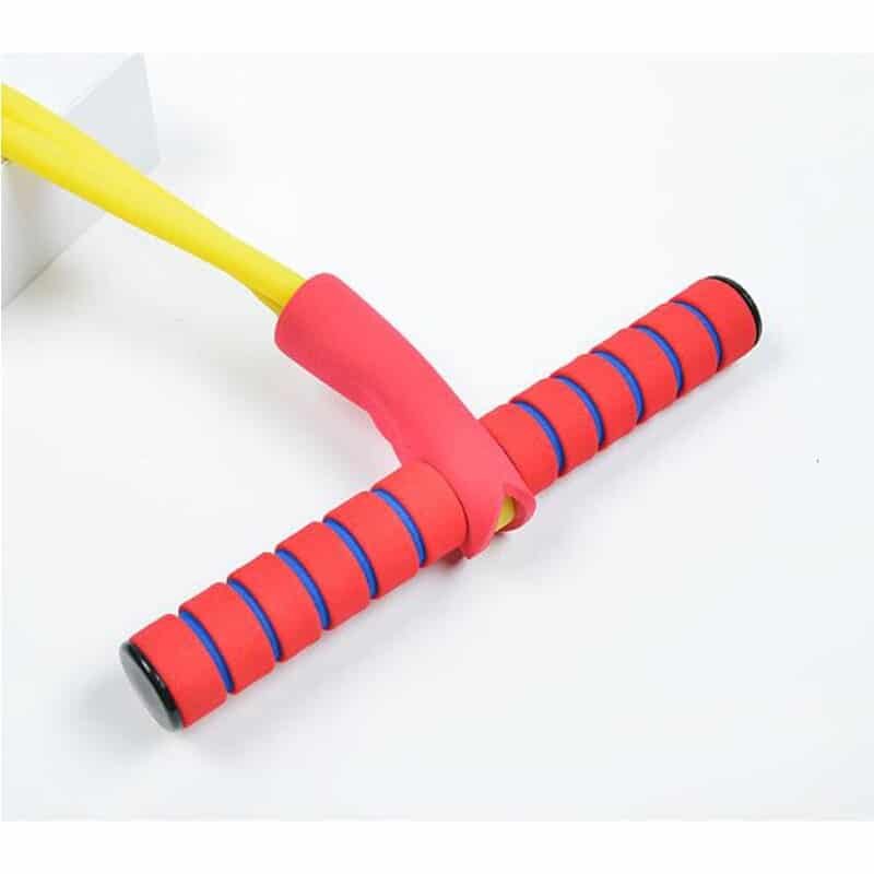 Get your kid off the sofa with our foam pogo stick that encourages fitness. Our bungee jumper is a foam elastic stick that promotes healthy activity whilst being incredible bouncy boing fun. This toy is crafted from excellent elasticity rope, a crisp soft foam handle, and a resilient foam base. And the heavy-duty components will withstand 250 lbs and will not damage the ground. The foam elastic stick makes great active toys for kids because they help train hand-eye coordination, balance, and gross motor skills. Give your kid a head start in life with a toddler foam stick! Buy now!
