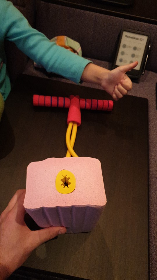 Amazing little thing! (well, not that little but can be folded to not take more space than the brick). It is a great indoor toy to keep kids active and therefore more happy in lockdown as it doenst damage the floor. It does have a squeaky sound that is fun for kids but can get to you after a while (not my case). It also looks quite safe, my 3 year old loved it :)