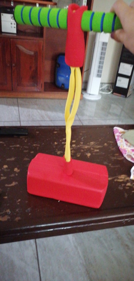 BOING, BOING, SQUEAK The Foam Stick is hours of healthy, bouncy fun. Crafted from durable foam, Foam Stick is an ideal first pogo bar for kids; each jump makes a fun squeaky sound destined to delight.