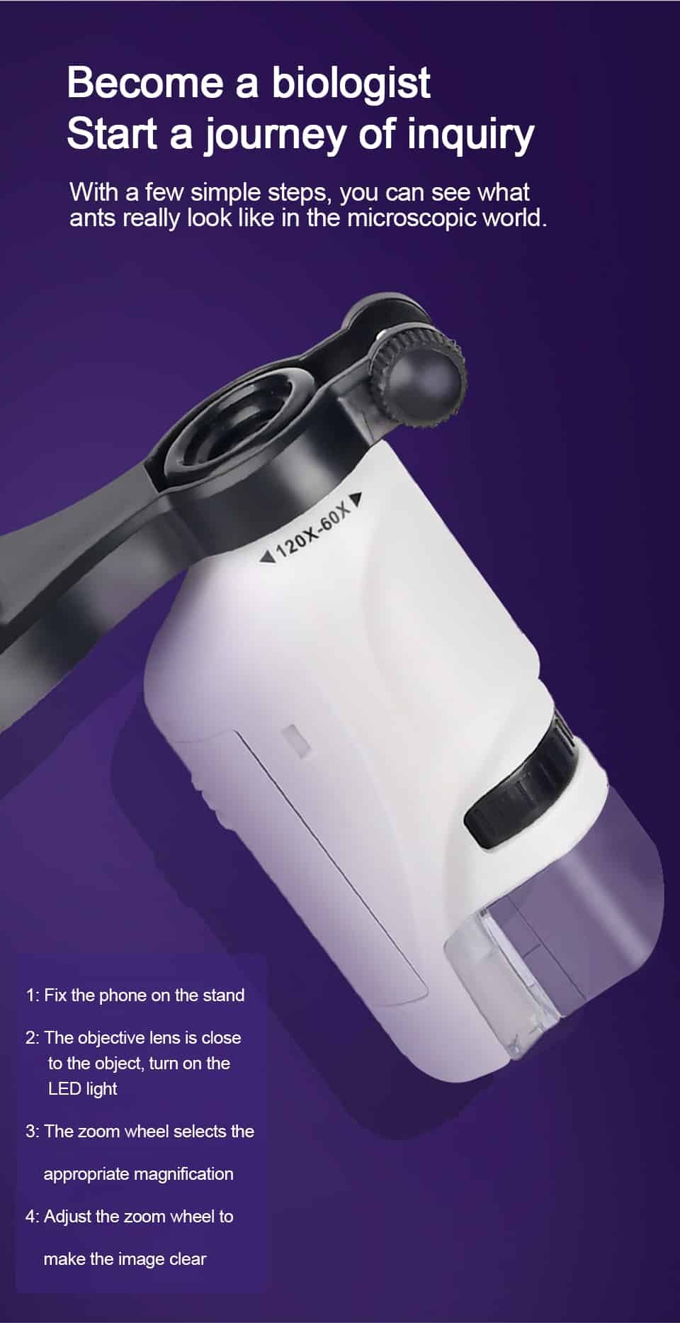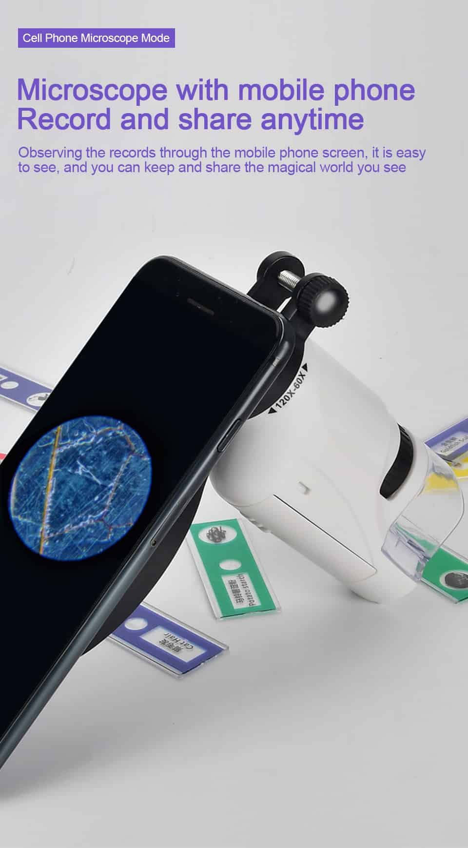 ●Can be connected to a mobile phone. Take pictures of the microscopic world with your phone