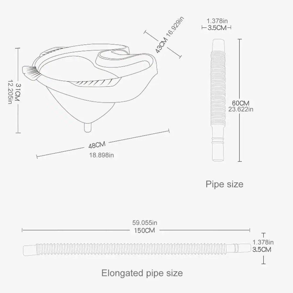 • Height Adjustable: The basin features an adjustable height mechanism, allowing you to customize it to your preferred height. This ensures comfort for both the user and the person being shampooed.