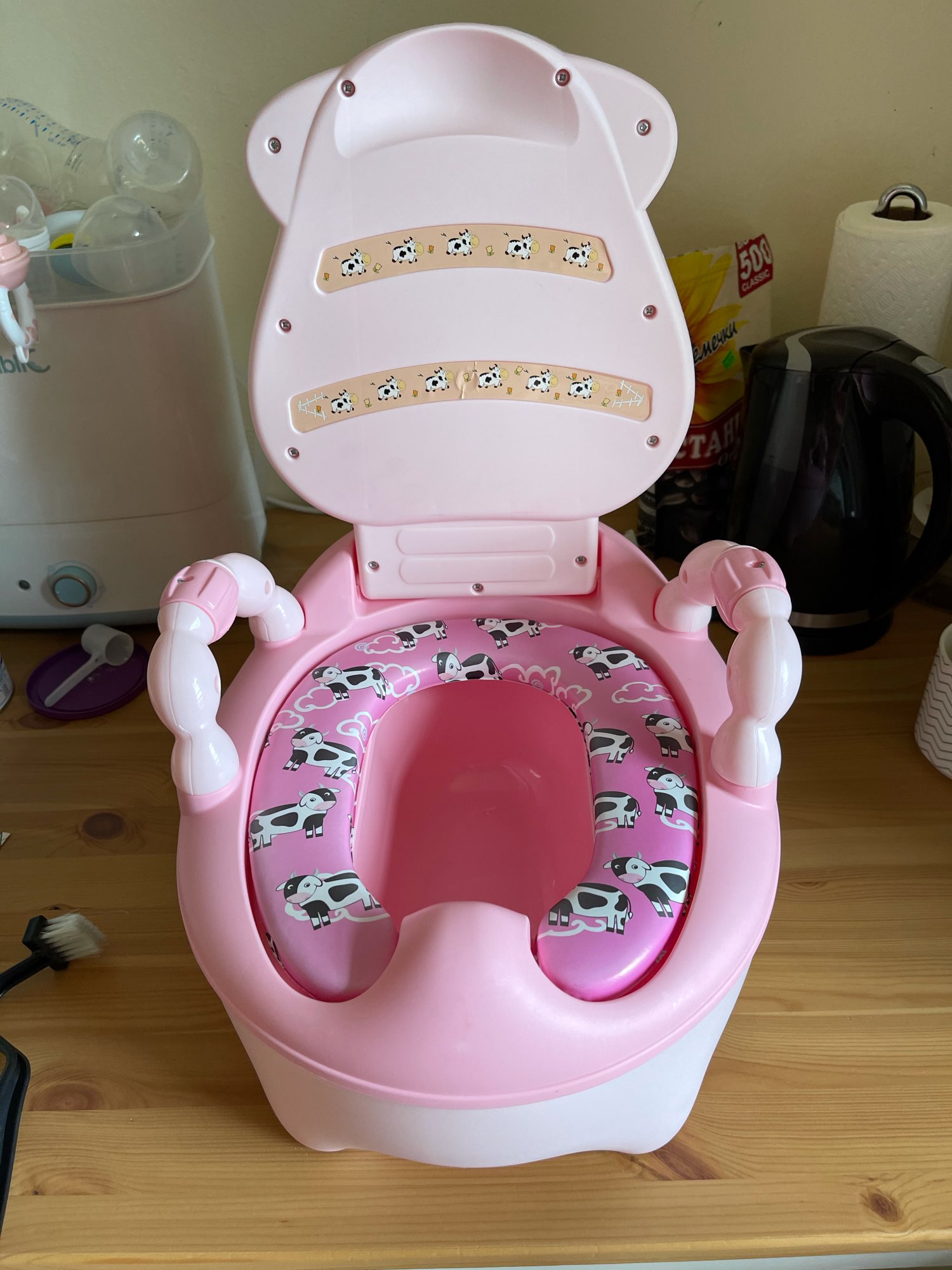 This is unreal cool!!!! Very beautiful and better for princesses not to find!!!)) plastic is good, there is no smell, soft sidushka, comfortable back. confused open screws-but they are pressed inside and the Queen will not hurt!)) in short, I'm delighted! It remains only to wait for my karapusa to grow up to the pot (We 5, ordered taking into account the delivery for growth)))) Thank you very much for such this this and this is a miracle of miracles; D will not please me... and the colors are super! And the handles are comfortable, and packed well, and the delivery is fast!! Super Super Duper