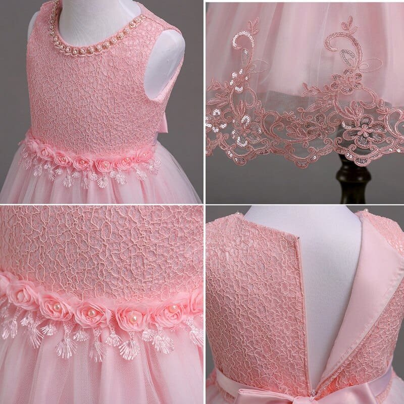 The dress and color fully match the description. Stitched neatly. Looks calm and beautiful, without unnecessary sequins and ruches. The size of 18 m came up for a girl of 2 years, even a little loose, but it is thin. You can tie ribbons on the back and it will not be visible that the dress is a little large.