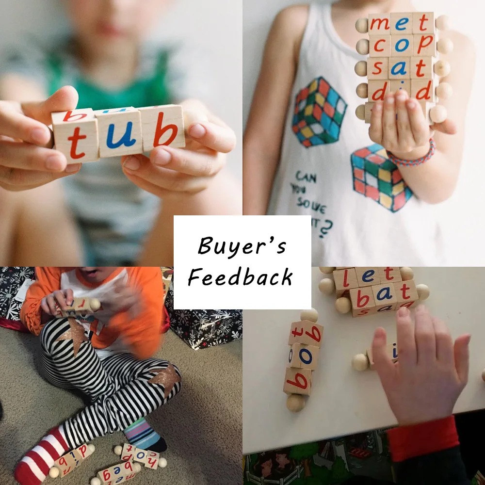 Are you looking for a fun tool to strengthen and improve your child’s reading skills? Introduce to you our Montessori phonetic reading blocks, they are perfect for the beginning reader. Your child will delight in twisting the blocks to discover new letters and lots of words, especially ones that rhyme. The blocks allow phonic practice with all 5 vowel sounds plus 13 different consonants, giving your little reader a total of 80 words to read over and over. These cubes are made of eco-friendly material and hand-made in the USA with imported sustainably harvested Maple wood. Also, the game is completed with a set of flashcards. These flashcards have one side including a picture with the corresponding word, making it easier for children to remember the meaning of words. Buy now!