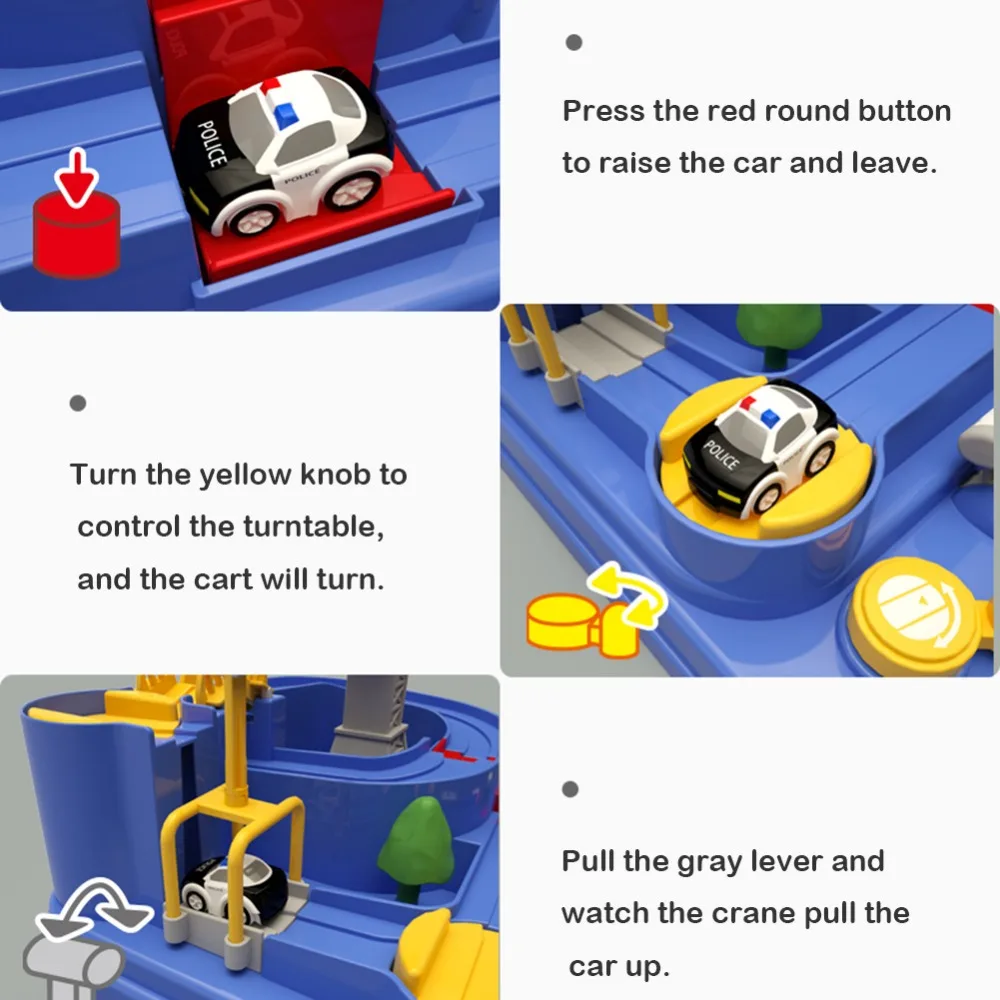Impressive Kids Toys: This car adventure toys set is a decent option for a game, suitable for boys and girls aged 3+ playing at home. They are wonderful Christmas Birthday Easter Gifts for Kids. Hope our products will bring you more happiness. If there is any issue, just let us know then we will make a satisfying solution special for you.