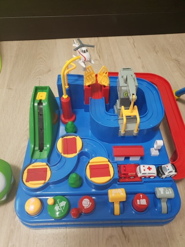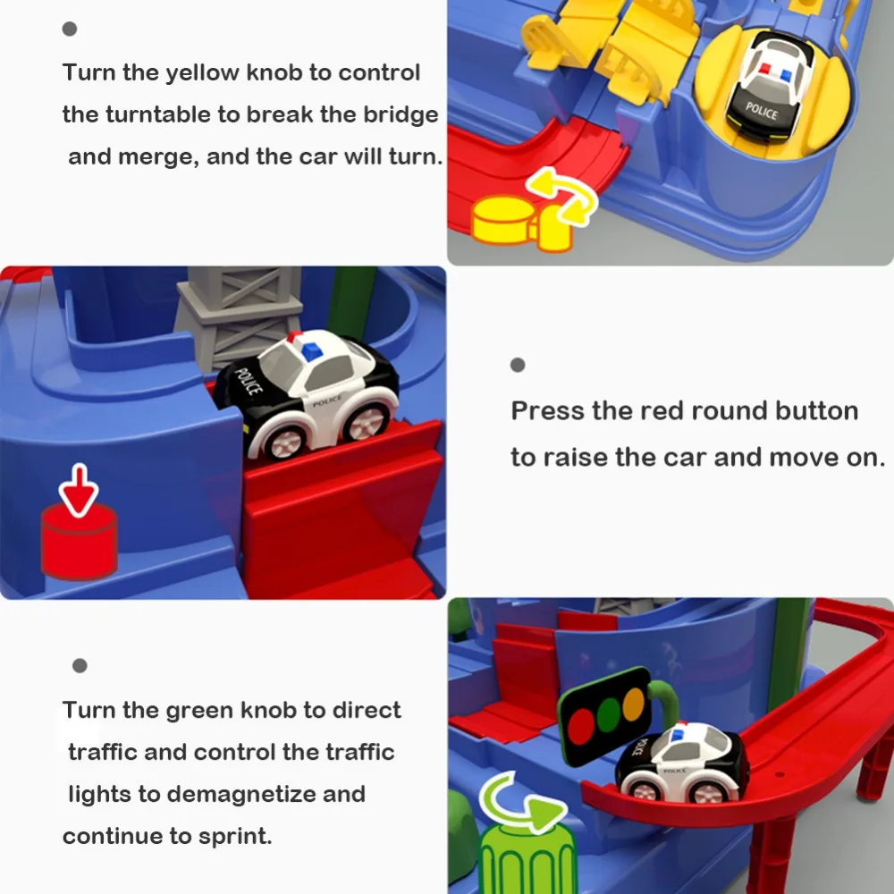 Functional & Creative Design: There are 6 buttons to controlling and pass 8 different challenges. Package includes 3 mini cars (police car, ambulance, fire engine) for kids to play together. The track table vehicle set is designed with a unique color matching to stimulate kids’ color perception.