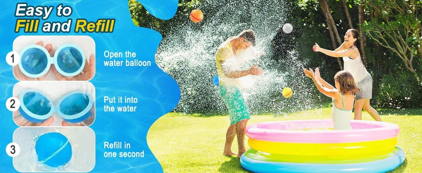 Unique magnetic self-sealing technology means the water ball can refill in just 1 second when immersed in water, and then you can throw it directly, and it splashes quickly on contact.