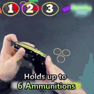 Instead of pulling rubber bands, simply tap the trigger of this pistol to shoot bands. This toy holds up to 6 ammunitions for rapid-fire action. PLUS the realistic clacking sound of the gears elevates the shooting experience.
