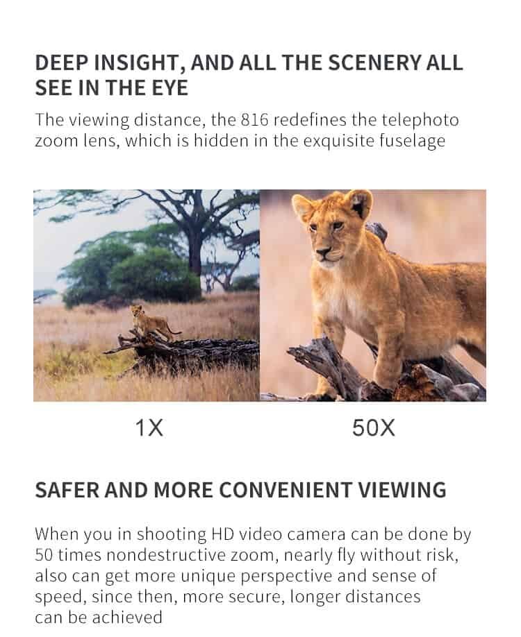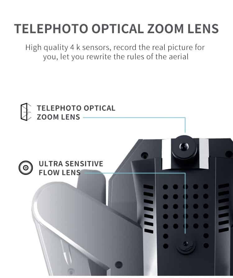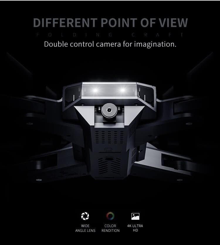 2. HD FPV Flight: Equipped with 4K/1080P HD which transmits the videos in real-time, s upport view switch: normal front lens, lower lens, picture in picture, split screen, t he pitch angle of the camera is adjustable
