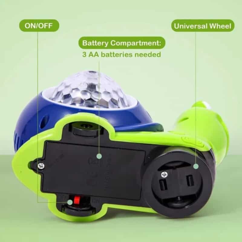 Sensory Snail Toy is easy to use, you just need to install the batteries and use the on/off switch to turn the snail on. Sensory Snail Toy has a universal wheel at the front to allow the snail to move freely and change direction once it bumps into an obstacle. Please note a small clip attached to the front wheel will need to be removed before the Sensory Snail Toy can move.
