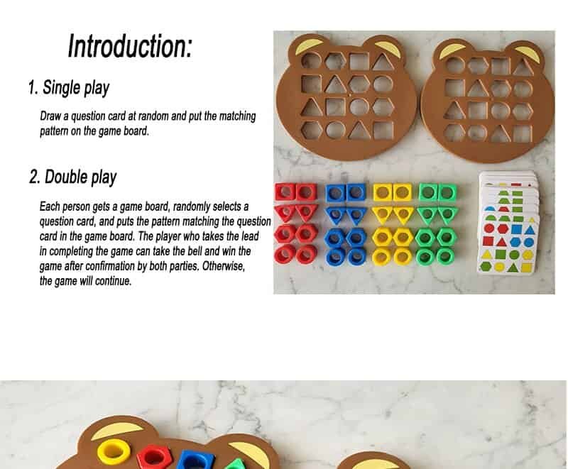 Shape Matching Game, Learning Educational Toy with Matching Cards Color Sensory Educational Toy Puzzle for Toddlers , Double