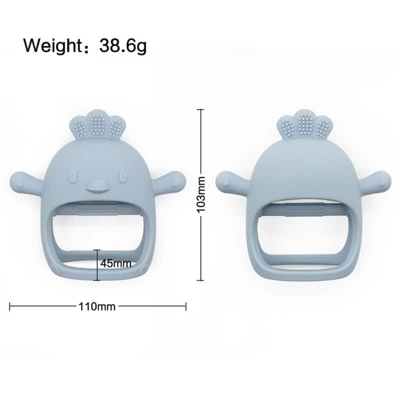 Did you know that 82% of babies suffer from dental pain during teething? But don’t worry, we’ve got you covered! Introducing our NEW Teething Glove, the perfect solution for soothing dental pain! Our teething glove is designed with a nipple shape on both sides and soft silicone touch points on top, ideal for 3m+ babies to bite in different directions. Finally, no more tears, crying, or throwing toys to the floor! Our Teething Glove is also easy to hold, thanks to the stem inside the hollow chick-shaped body that tiny hands can grip easily. It’s designed to keep your baby’s hand comfortable and dry.