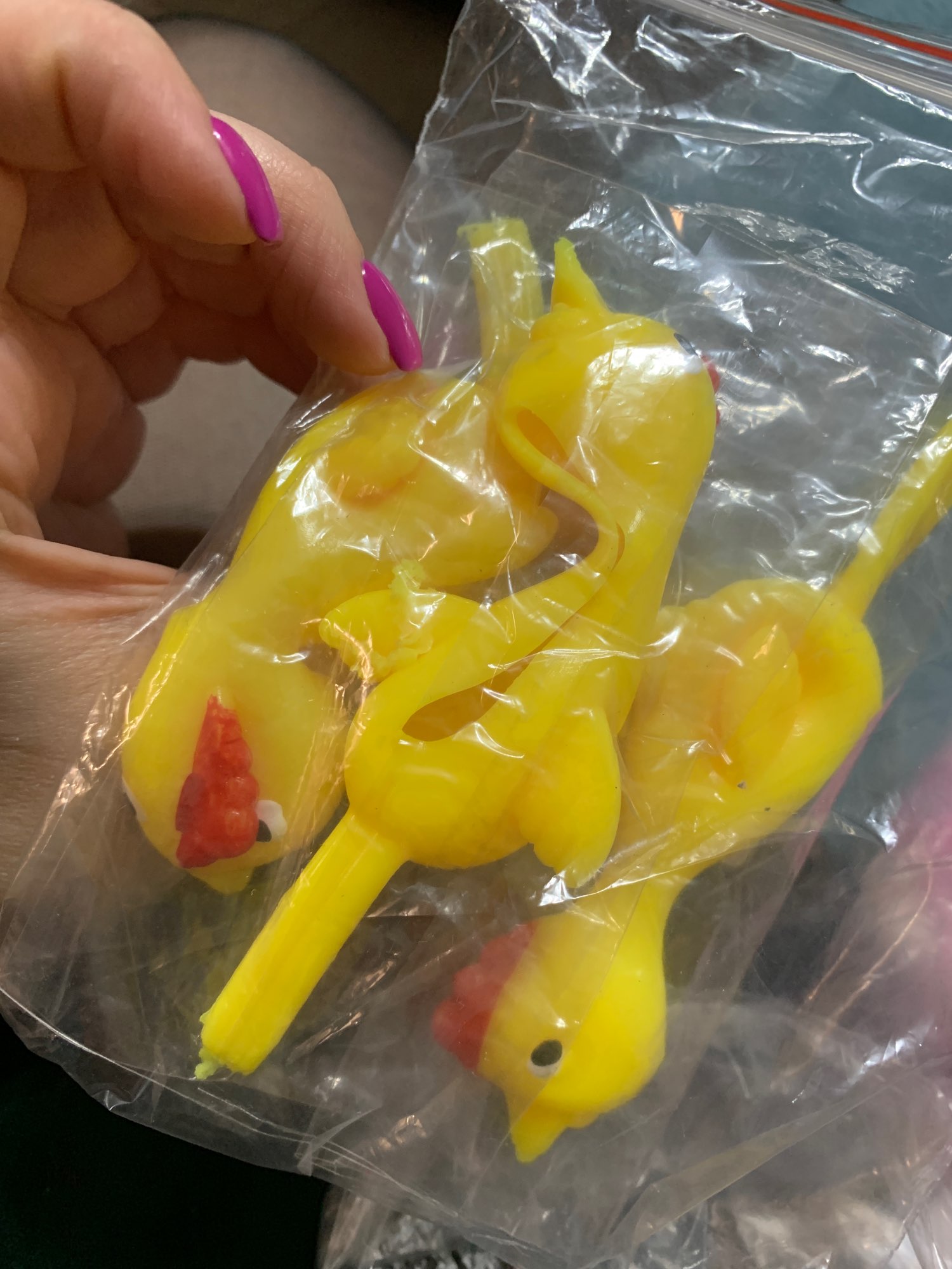 Are you looking for some creative and funny toys for yourself or your friends? Come to see our new Slingshot chicken toy prepared for you, which is made from premium material for durable and long-term use. When you want to release pressure, you can slip the toy over your finger, pull it hard, and pop it out. The little yellow chicken is full of elasticity and strong stretching force. It can reach 1:13 and will not break at the maximum. This toy has a cute look, adults, and children can play. There can be catapult competitions after class and you can also play in the playground. It will be a good gift for yourself, your friends! Buy now!