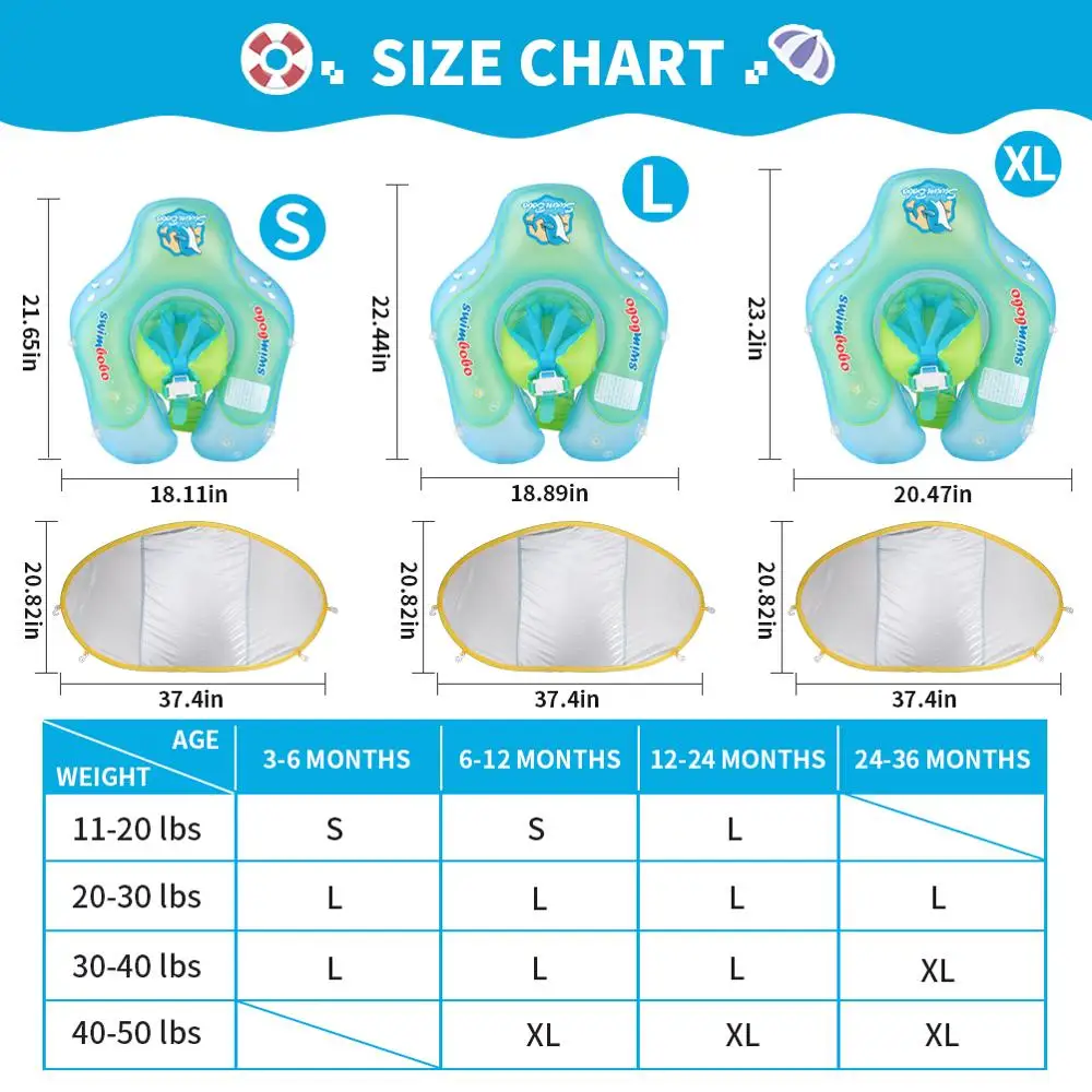 For babies age 3 months-6 years old, check the size chart or you can also contact us, we will recommend the size for your baby. Folds easily for storage and transport in the included convenient carry case – it’s a great pool float for travel.