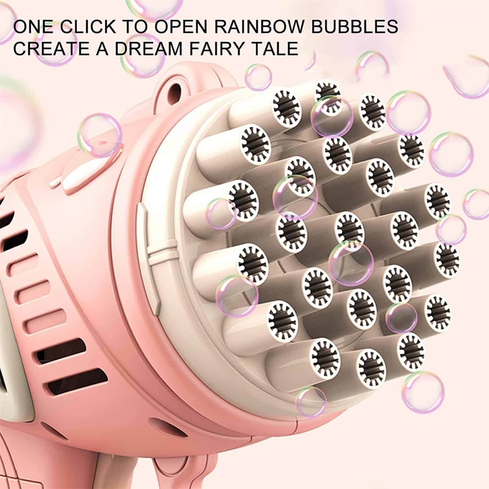 INNOVATIVEBUBBLE MAKER DESIGN – The bubble rocket launcher has 23 bubble holes, blowing thousands of colorful bubbles every minute.