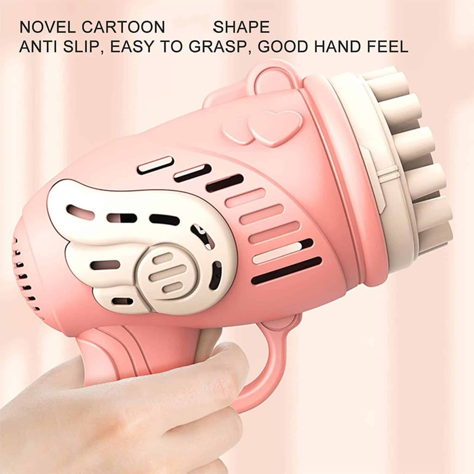 The Soap Bubble Machine has 23 holes to blows out thousands of colorful bubbles per minute. innovative toy design and colorful bubble also caters to the children’s preference and catches their attention.