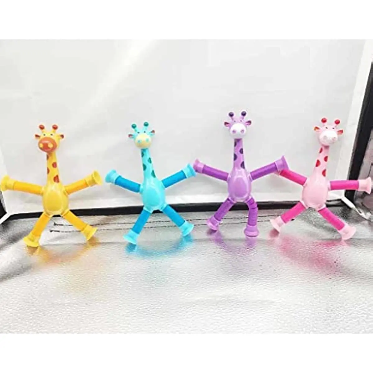 Creative Design: Telescopic Suction Cup Giraffe Toy is made of tubes, The cute animal body wraps both ends of the tube, which is not only beautiful, but also ensures the safety of children, which can pop, stretch and rotate.