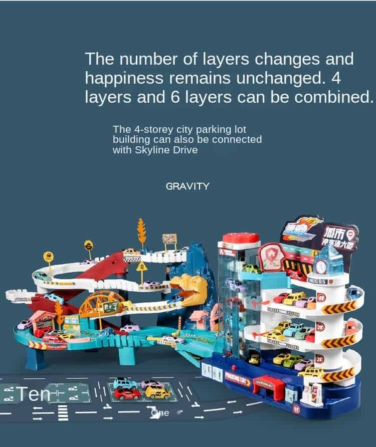 Real Scene Simulation: Toy simulation is a fun way to teach toddlers about the concept of the world around them. This Parking Lot Big Adventure toy restores the real parking lot and gives toddlers a better scene experience like how parking building works, various cars, traffic rules and traffic safety, parking guidance and exits are simulations of real scenes.