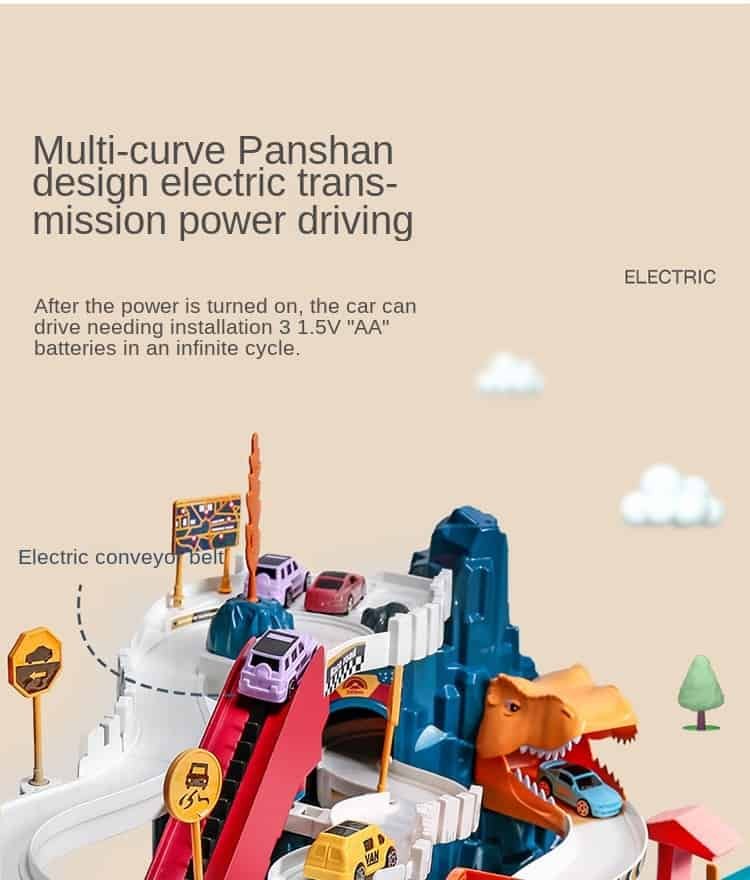 Note: Dinosaur Track:3*AA batteries (not included) are required; Parking Lot:4*AA batteries (not included) are required