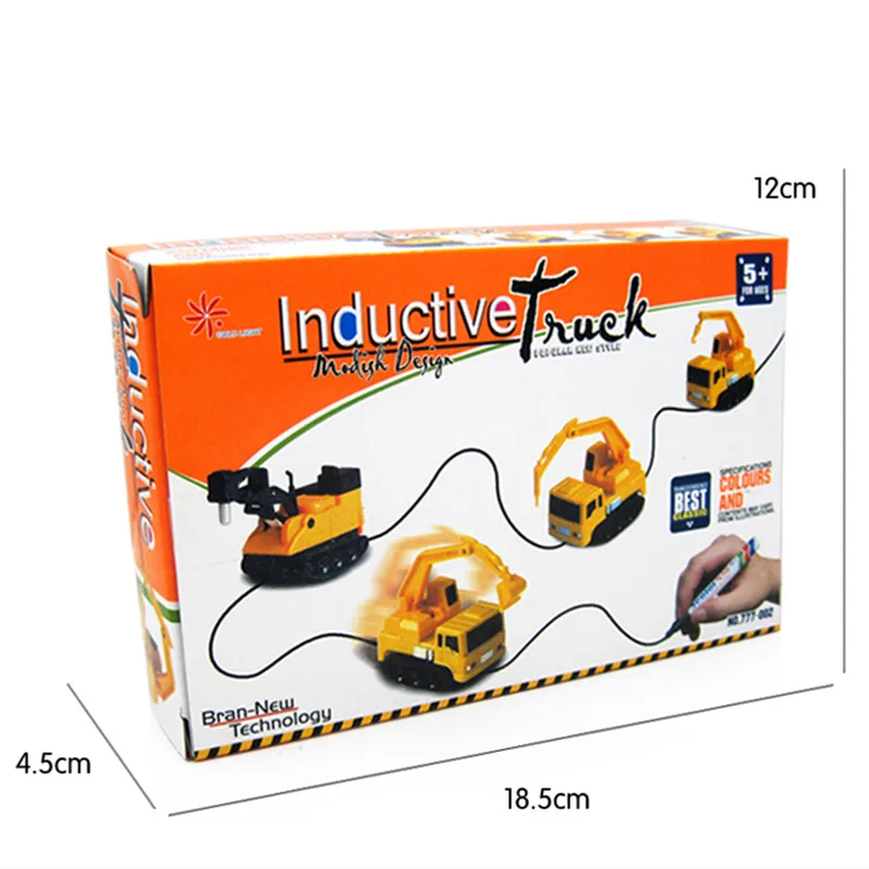 The Trace Truck Inductive Toy has an optical sensor that reads the black line drawn on a white piece of paper.