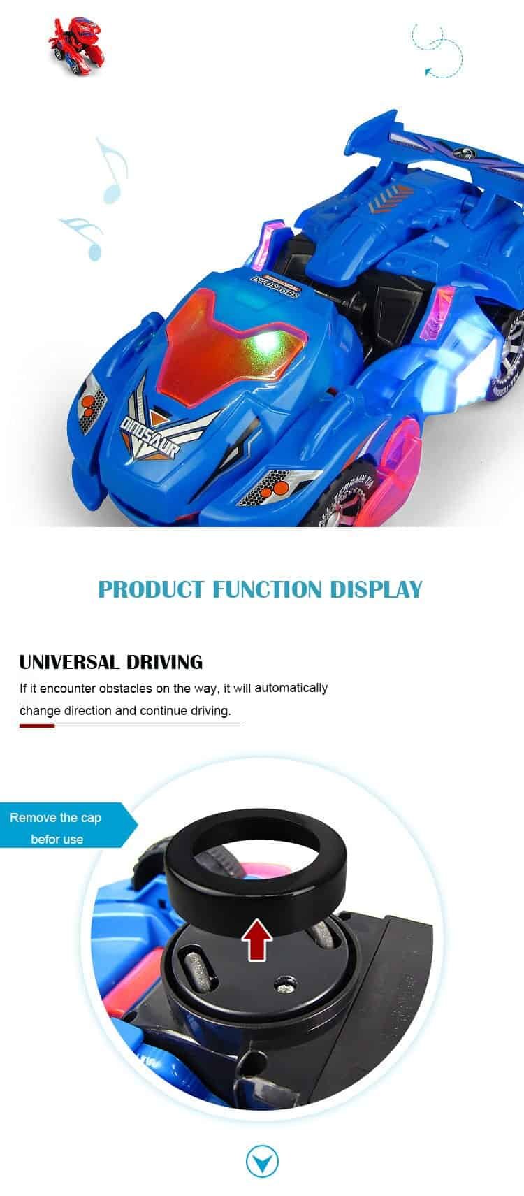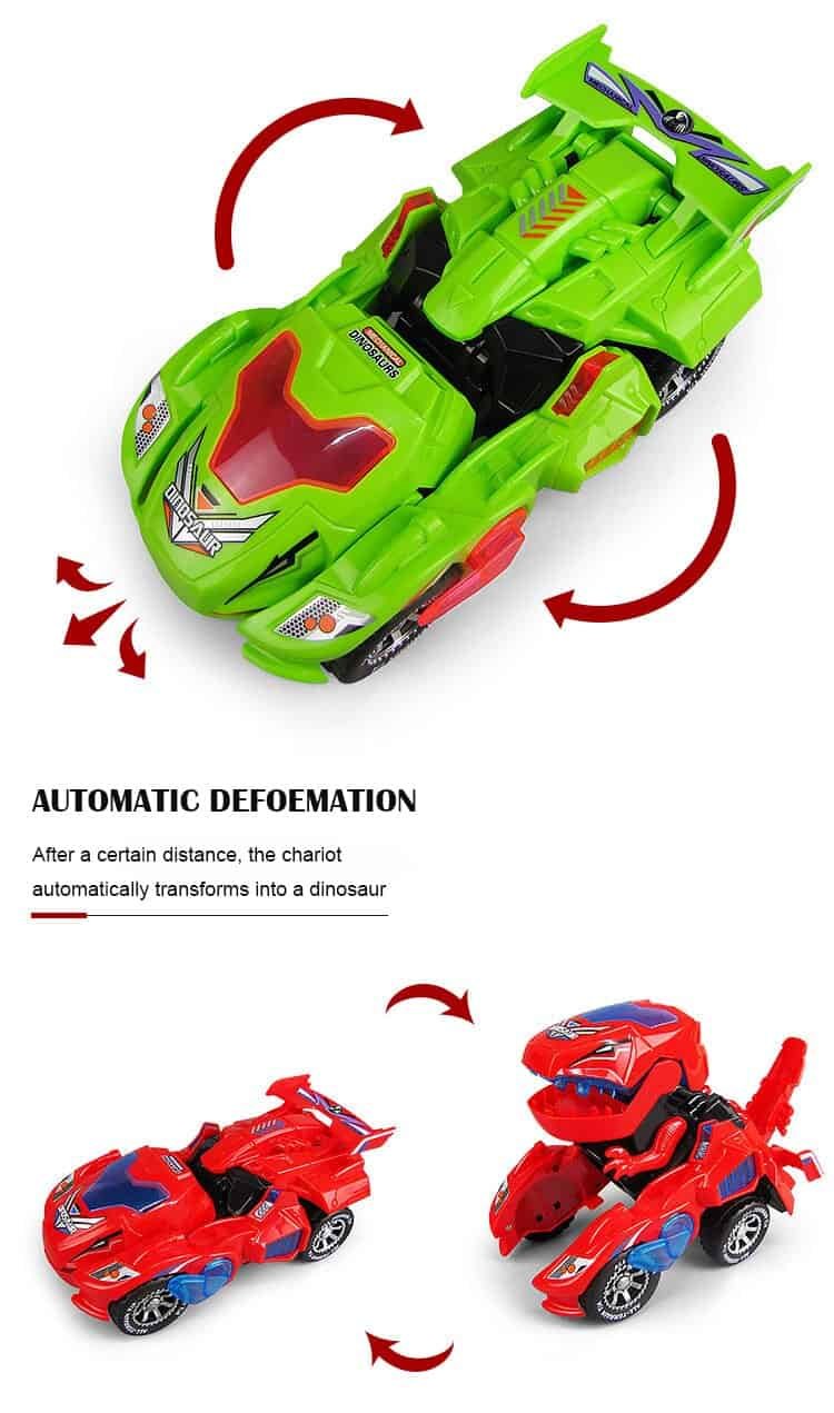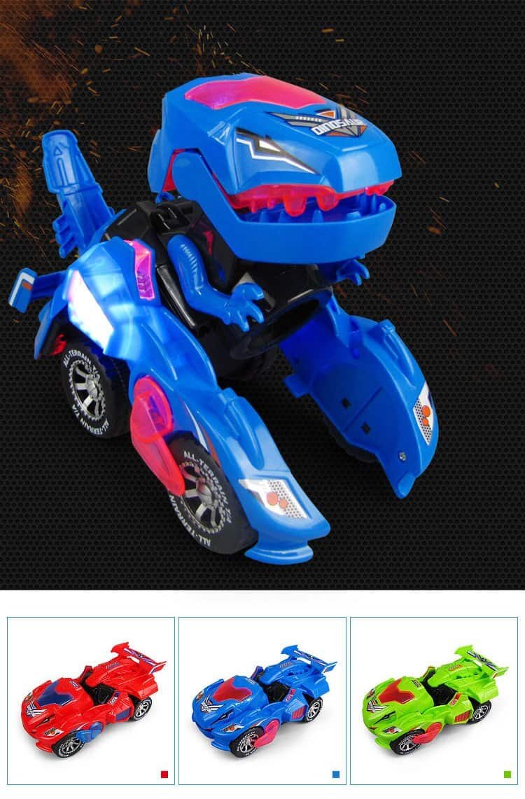 Colorful, with LED lights and roaring dinosaur sound, this car automatically transforms into a dinosaur.
