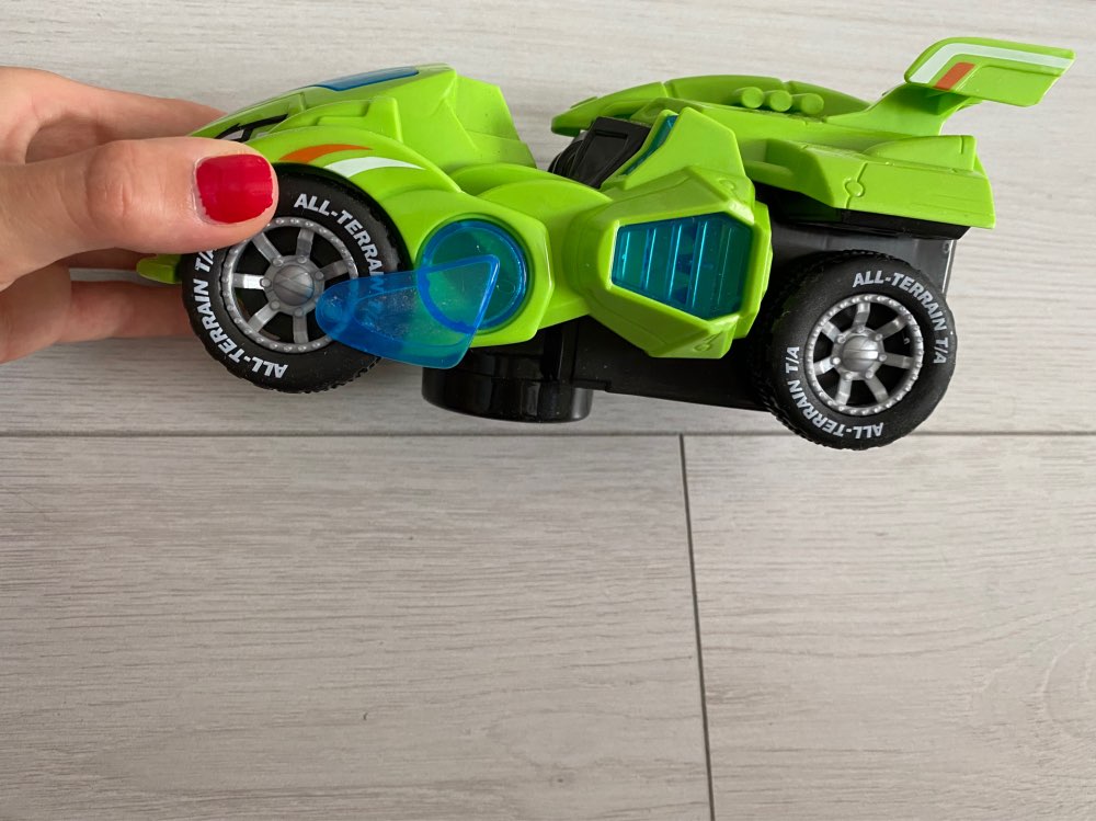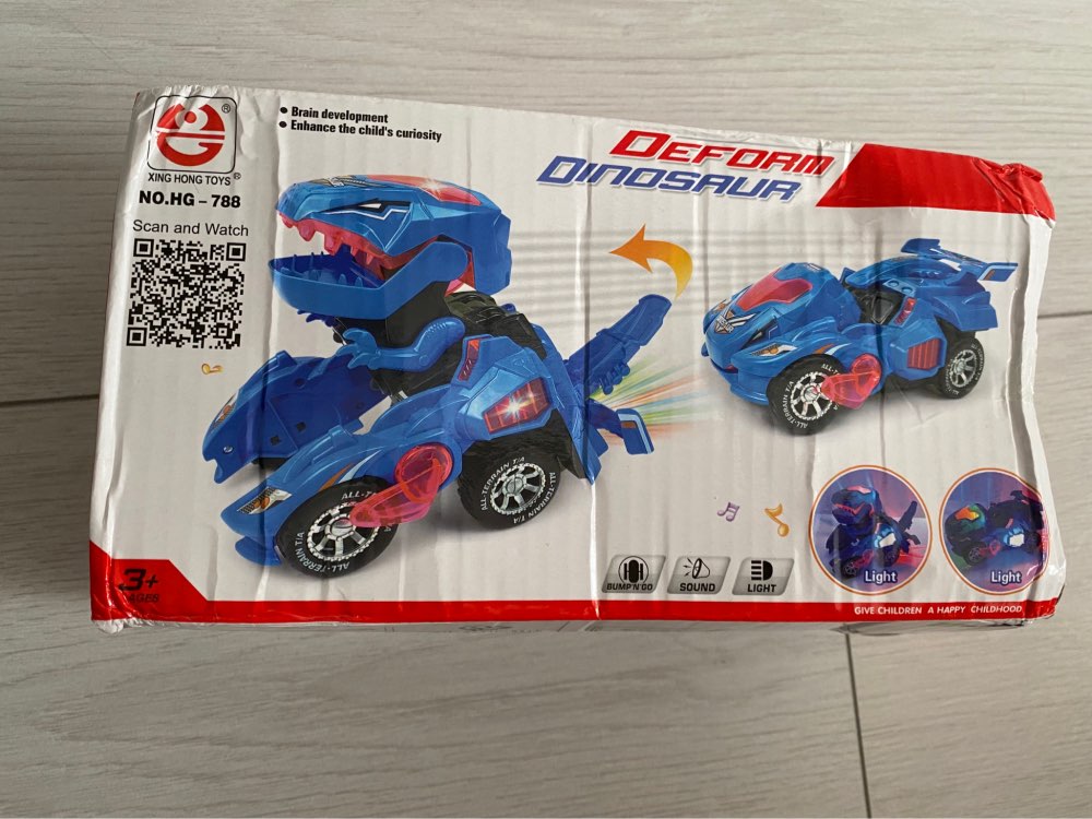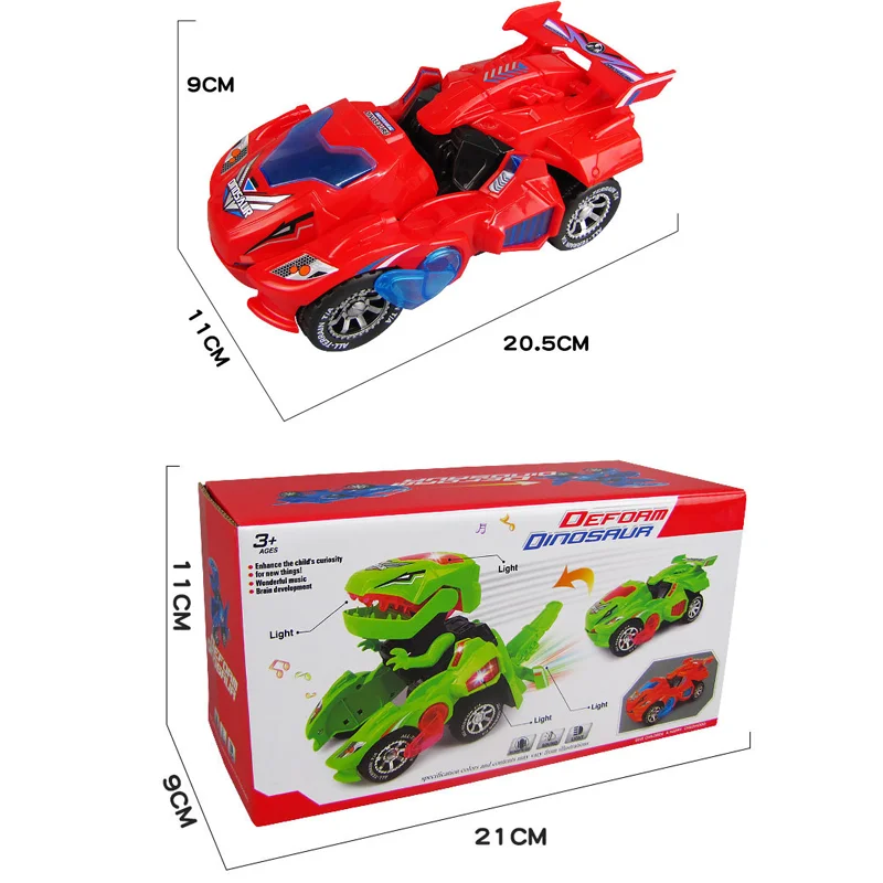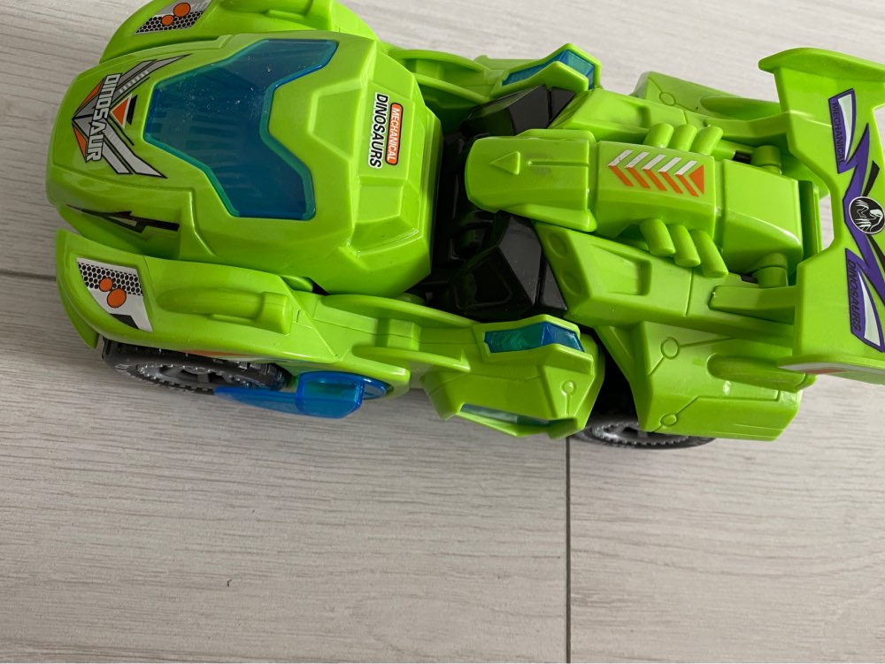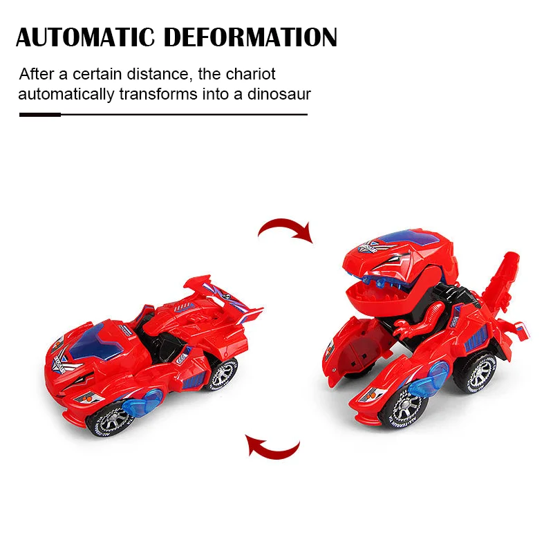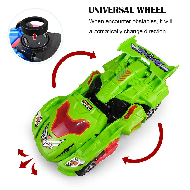 Colorful, with LED lights and roaring dinosaur sound, this car automatically transforms into a dinosaur.