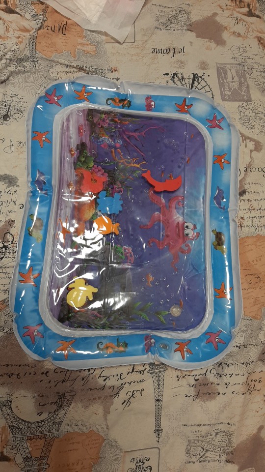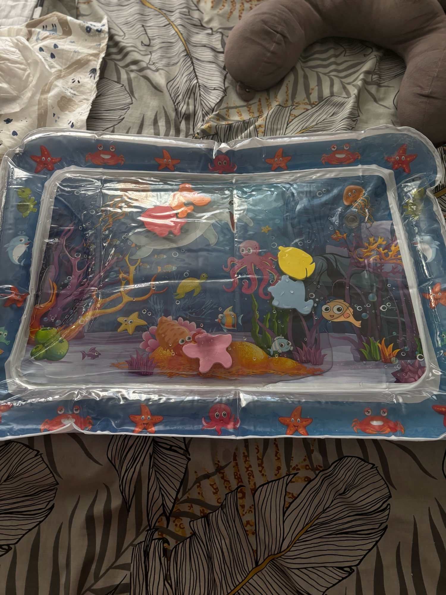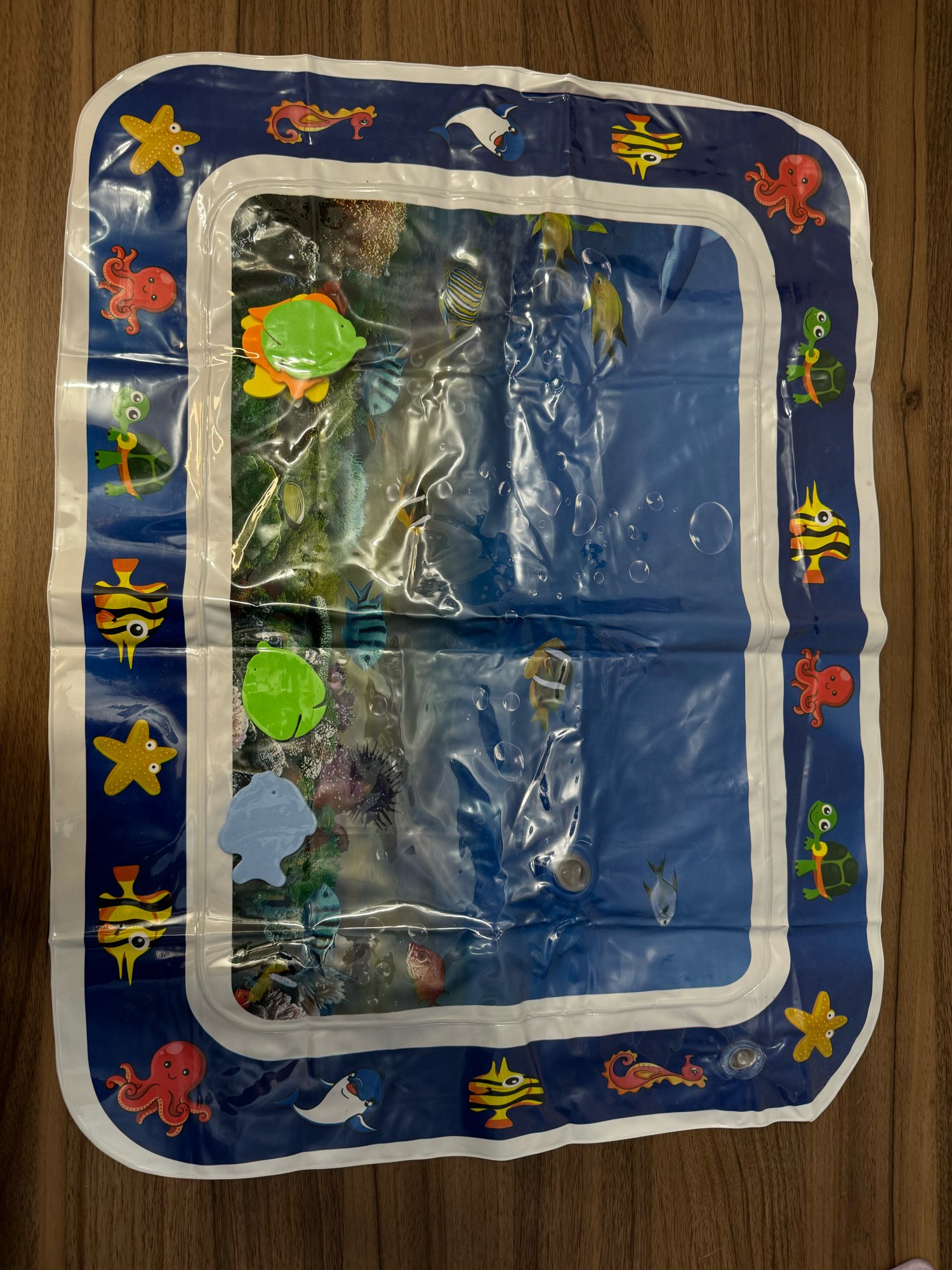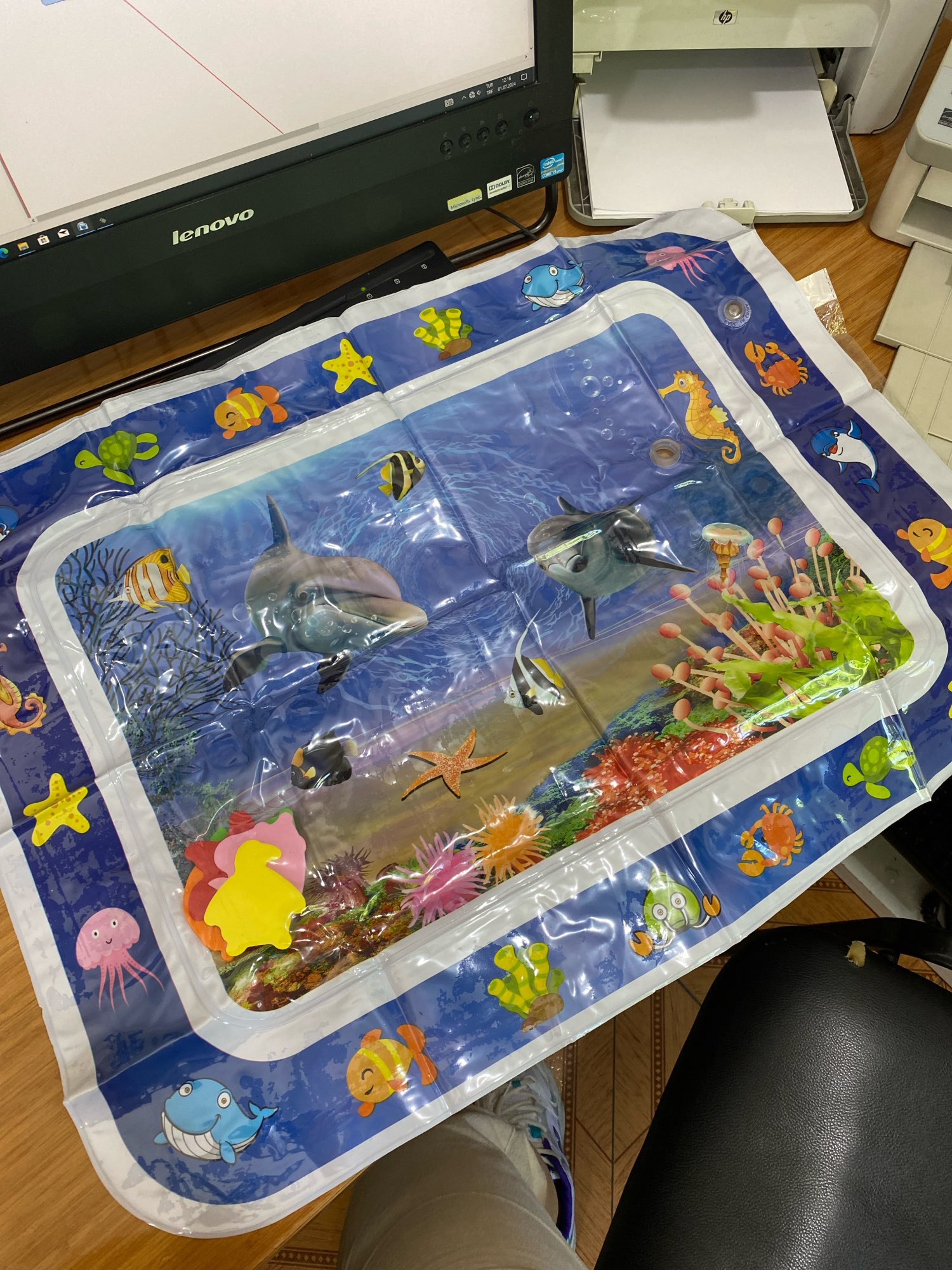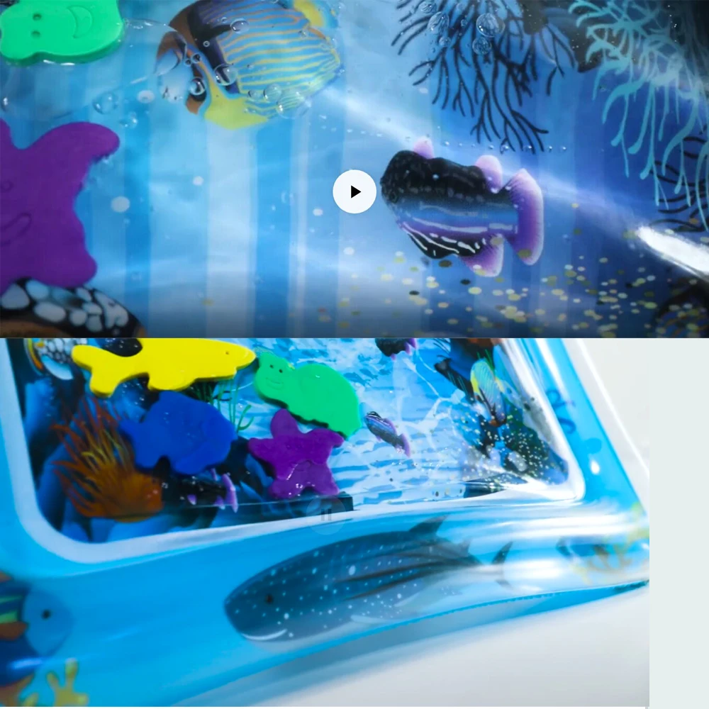 This is a kind of tummy time water mat, made of thick PVC material, will not leak air of water. The bright underwater world of engaging colours and sea creatures. Lots of visual colours and movement which creates fun and excitement. Great for sensory stimulation, motor skills, cognitive abilities, and social skills. You can have a try.