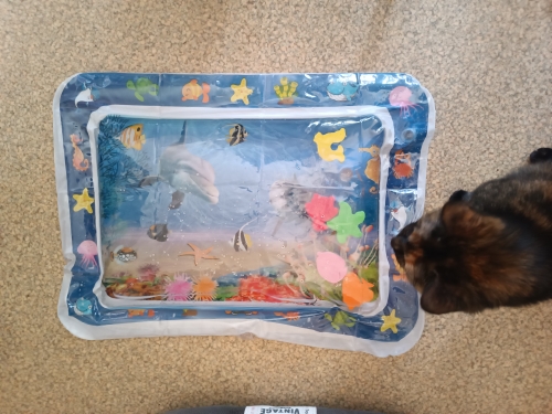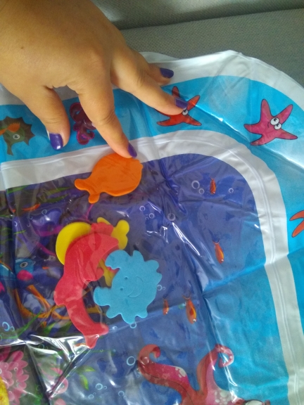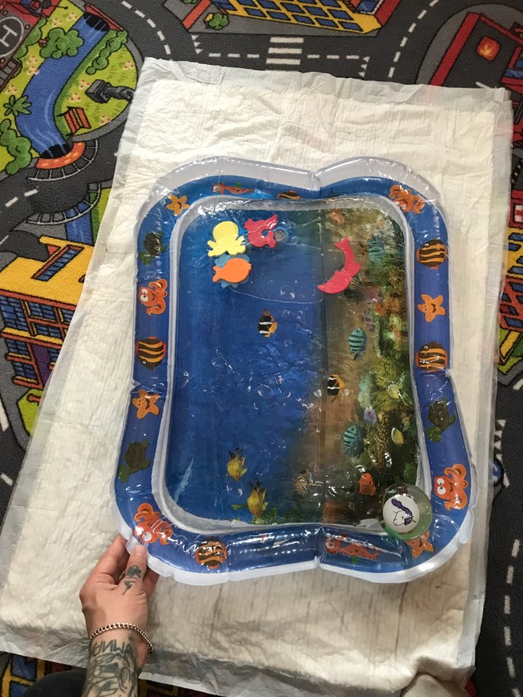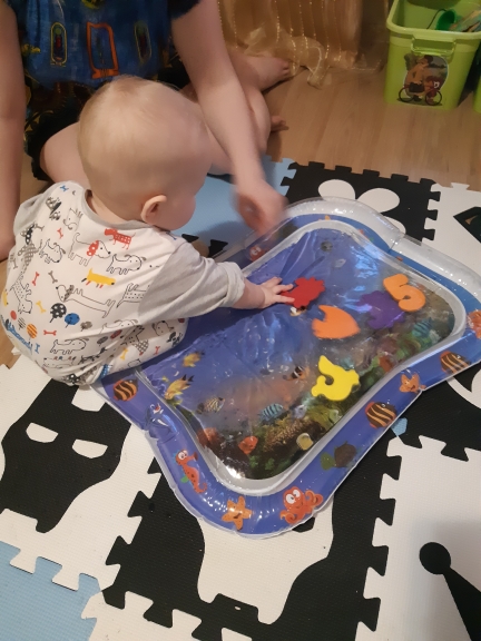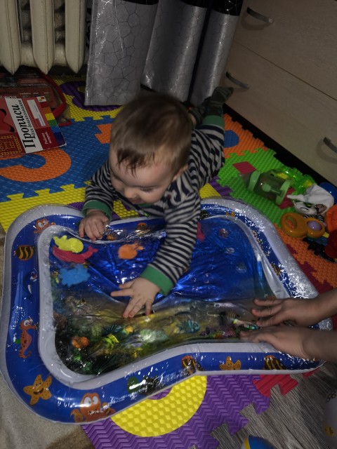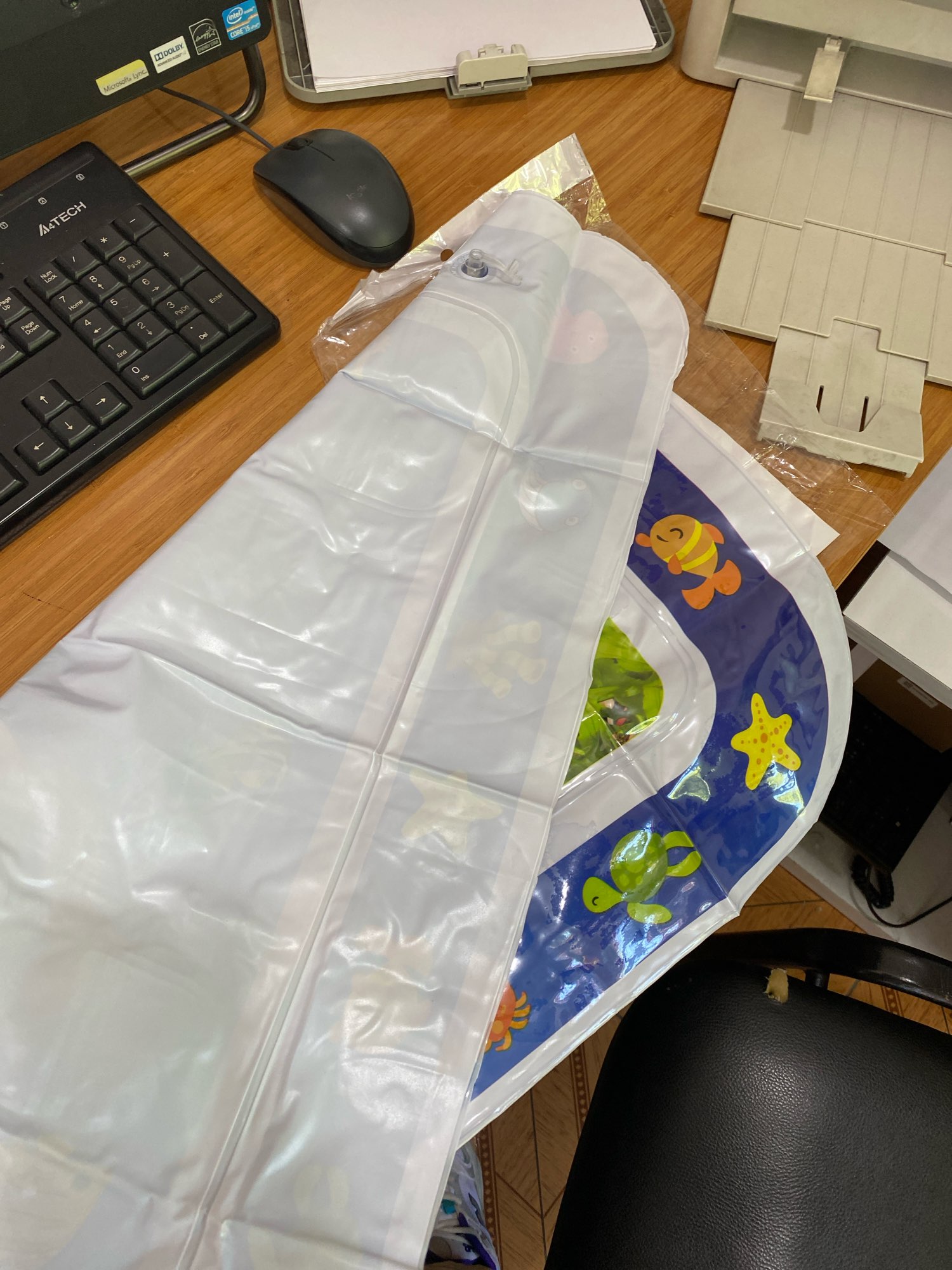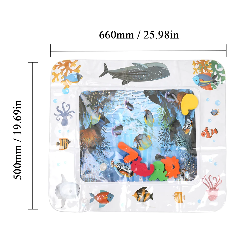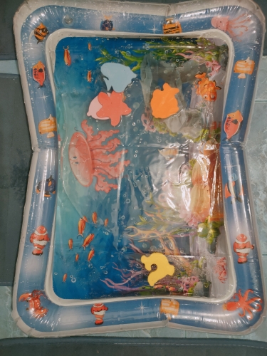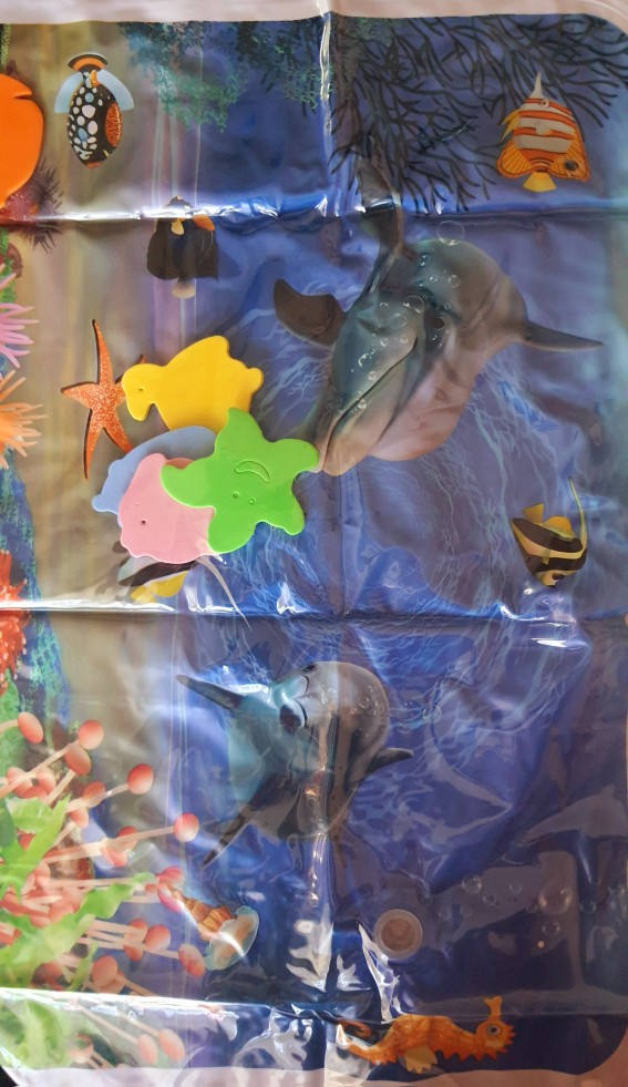 This is a kind of tummy time water mat, made of thick PVC material, will not leak air of water. The bright underwater world of engaging colours and sea creatures. Lots of visual colours and movement which creates fun and excitement. Great for sensory stimulation, motor skills, cognitive abilities, and social skills. You can have a try.