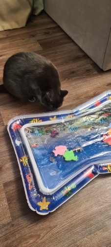 It is a fantastic water bed, my cats do not stop playing with it, it is very good and without a doubt I will ask for it again