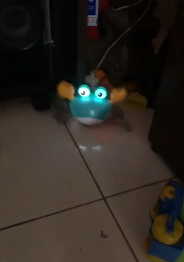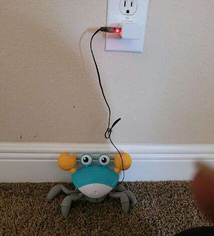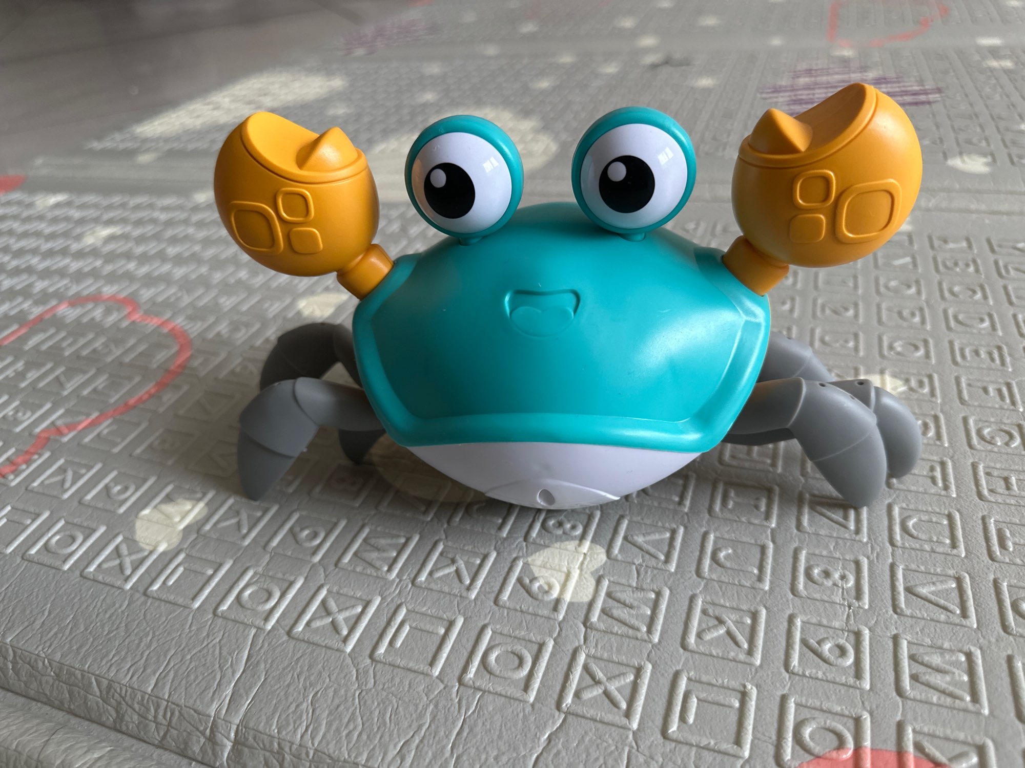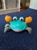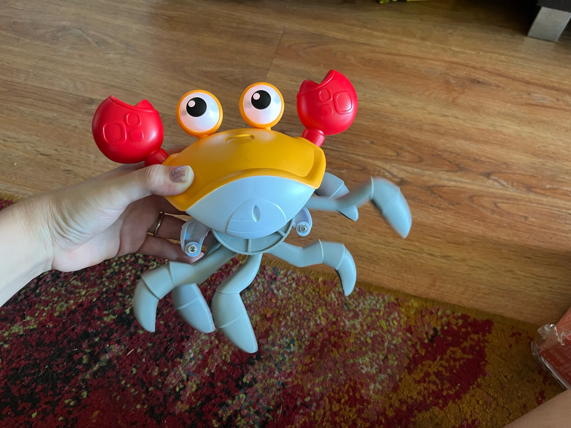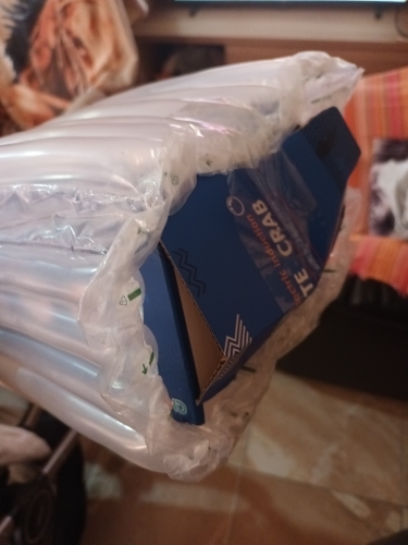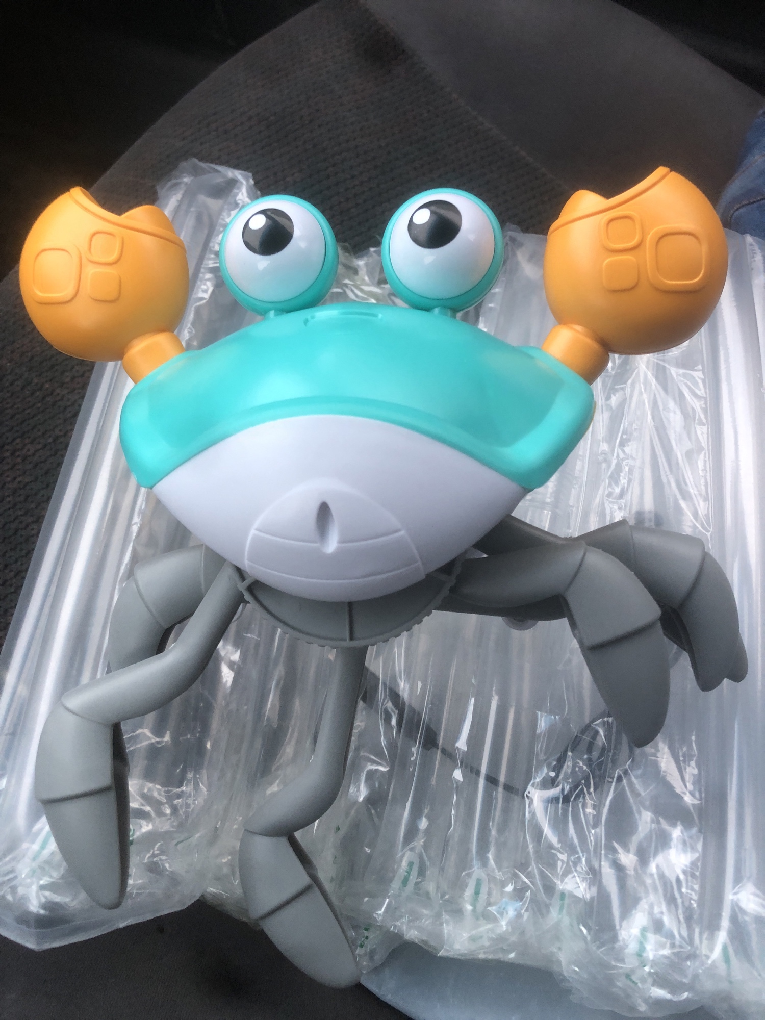 The box is a little crumpled during transportation, but the crab is intact, everything works. The toy is quite funny