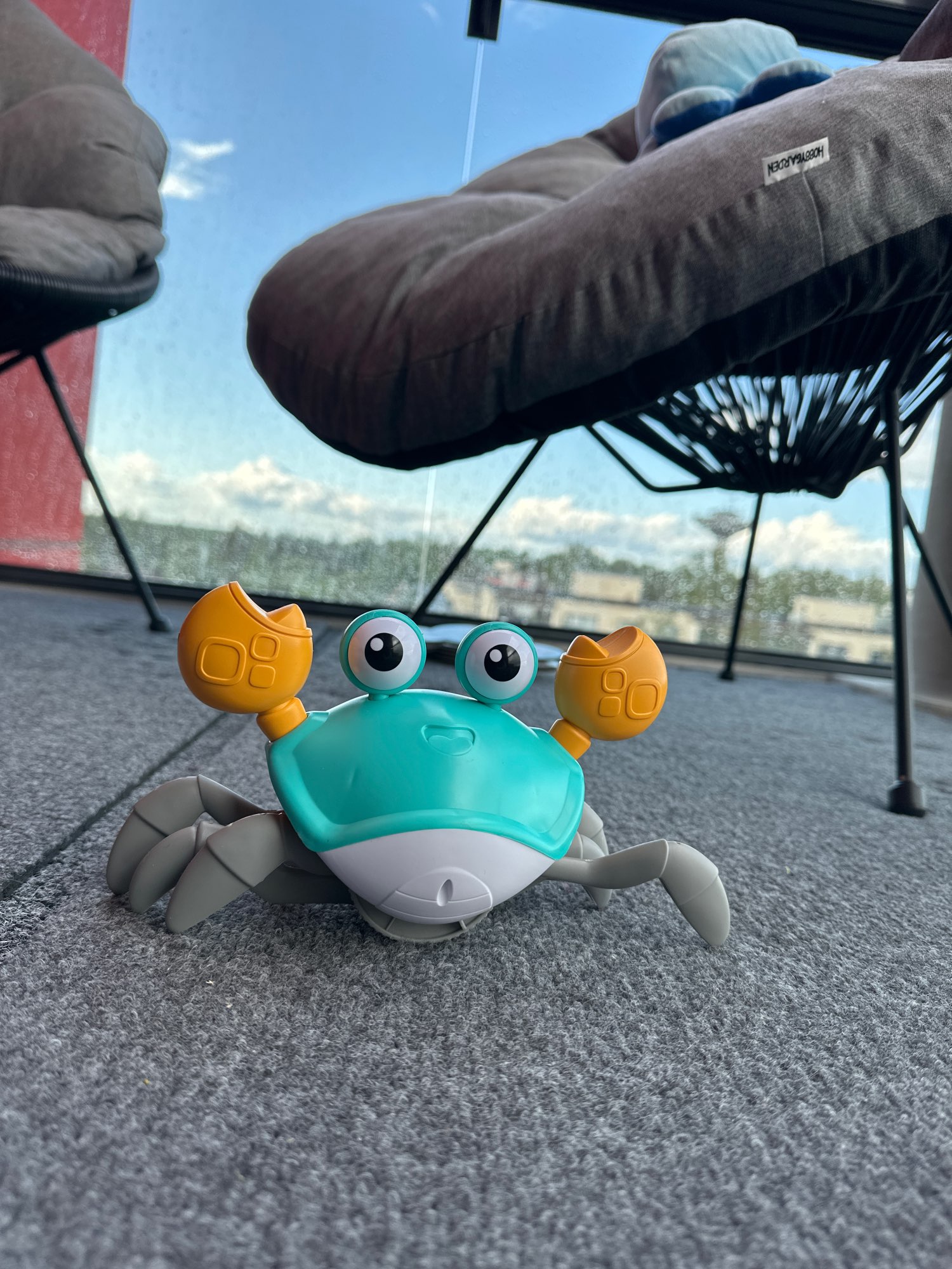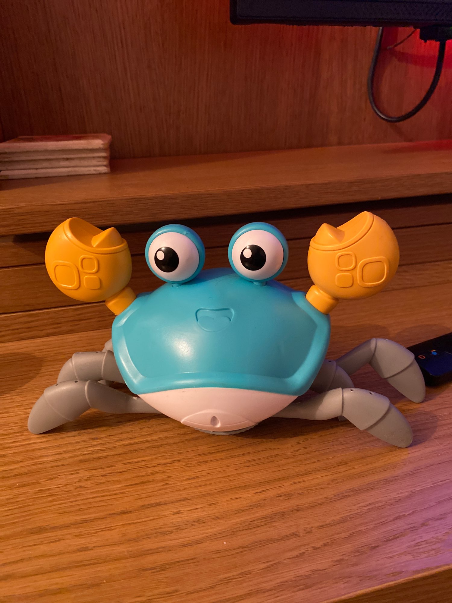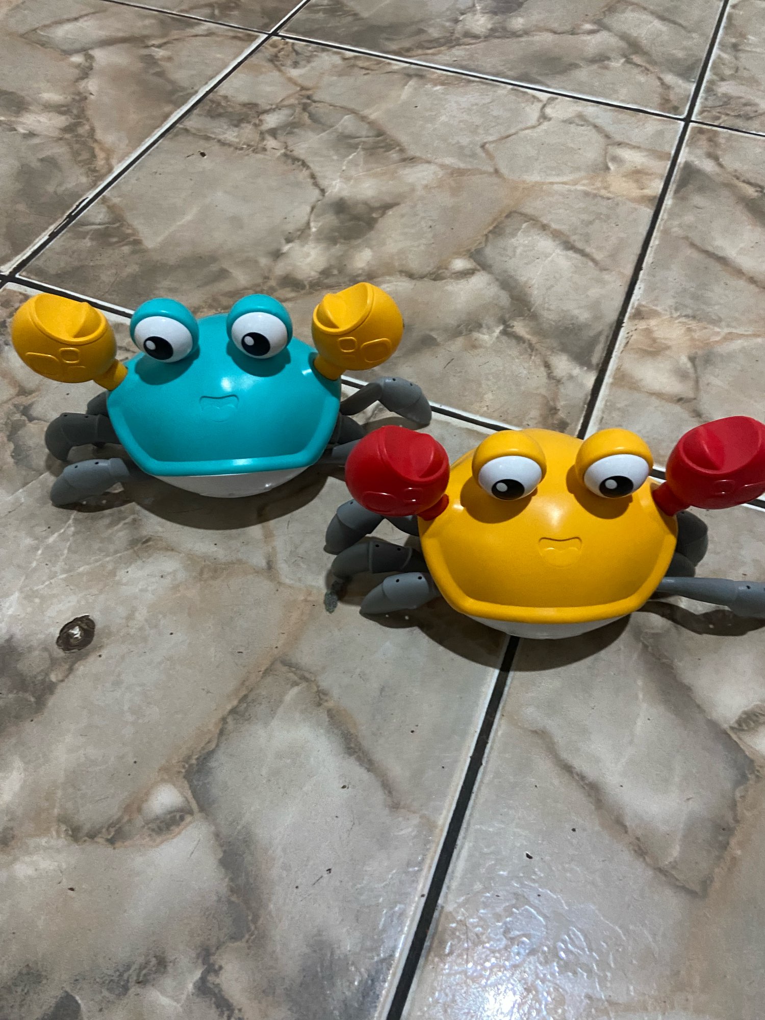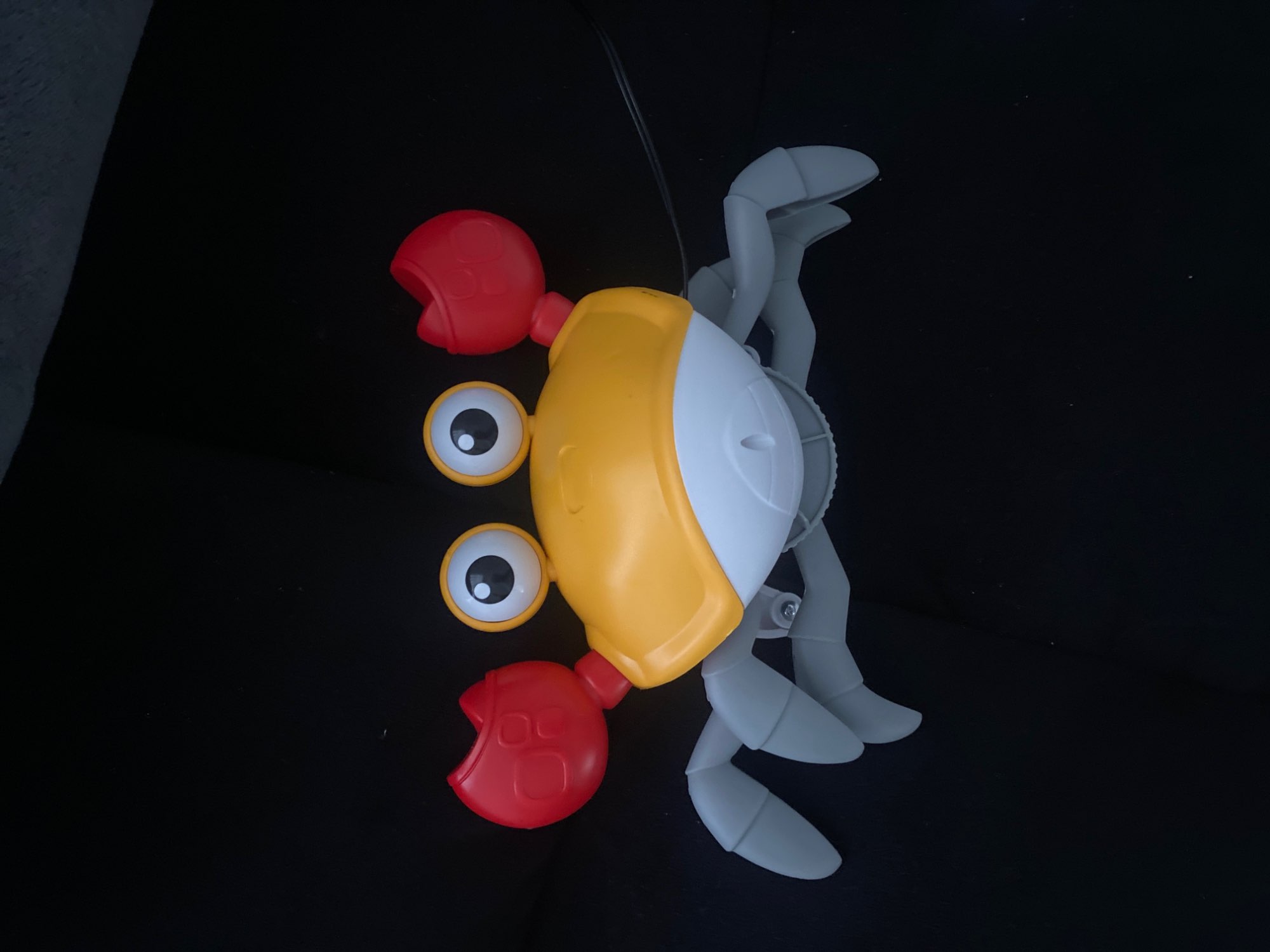 The box is a little crumpled during transportation, but the crab is intact, everything works. The toy is quite funny