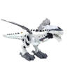 Mechanical Outlook Design with vivid movement: The overall body is assembled by many different sizes small parts, just like a robot. Its neck and tail can shake, wings can swing, mouth can move, and its strong feet are with wheels, walk with simulative dinosaur roars.